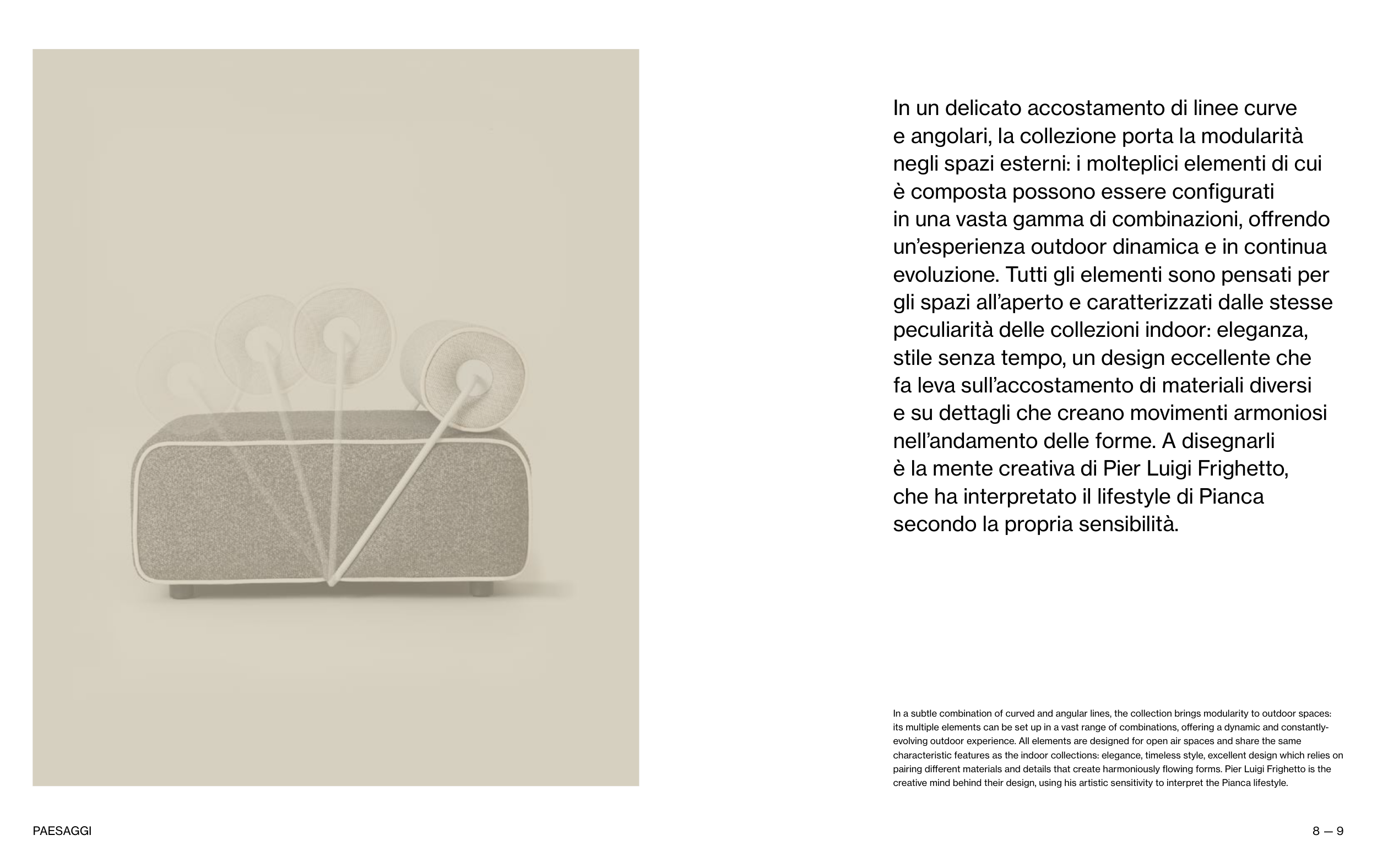 creative mind behind their design, using his artistic sensitivity to interpret the Pianca lifestyle.