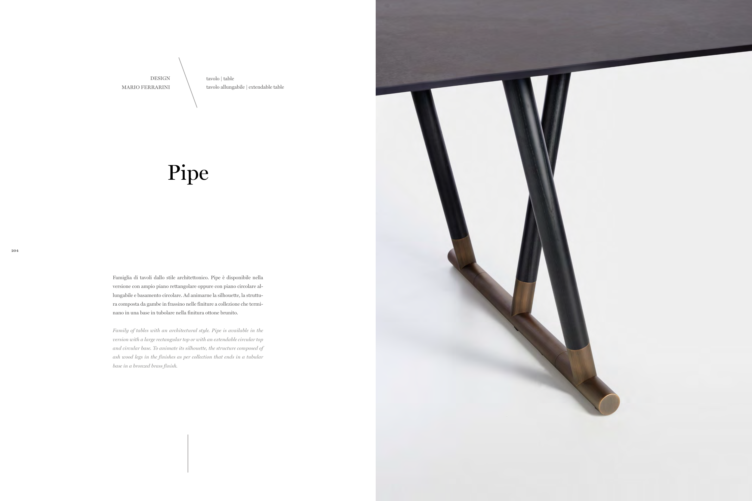 Famiglia di tavoli dallo stile architettonico. Pipe è disponibile nella