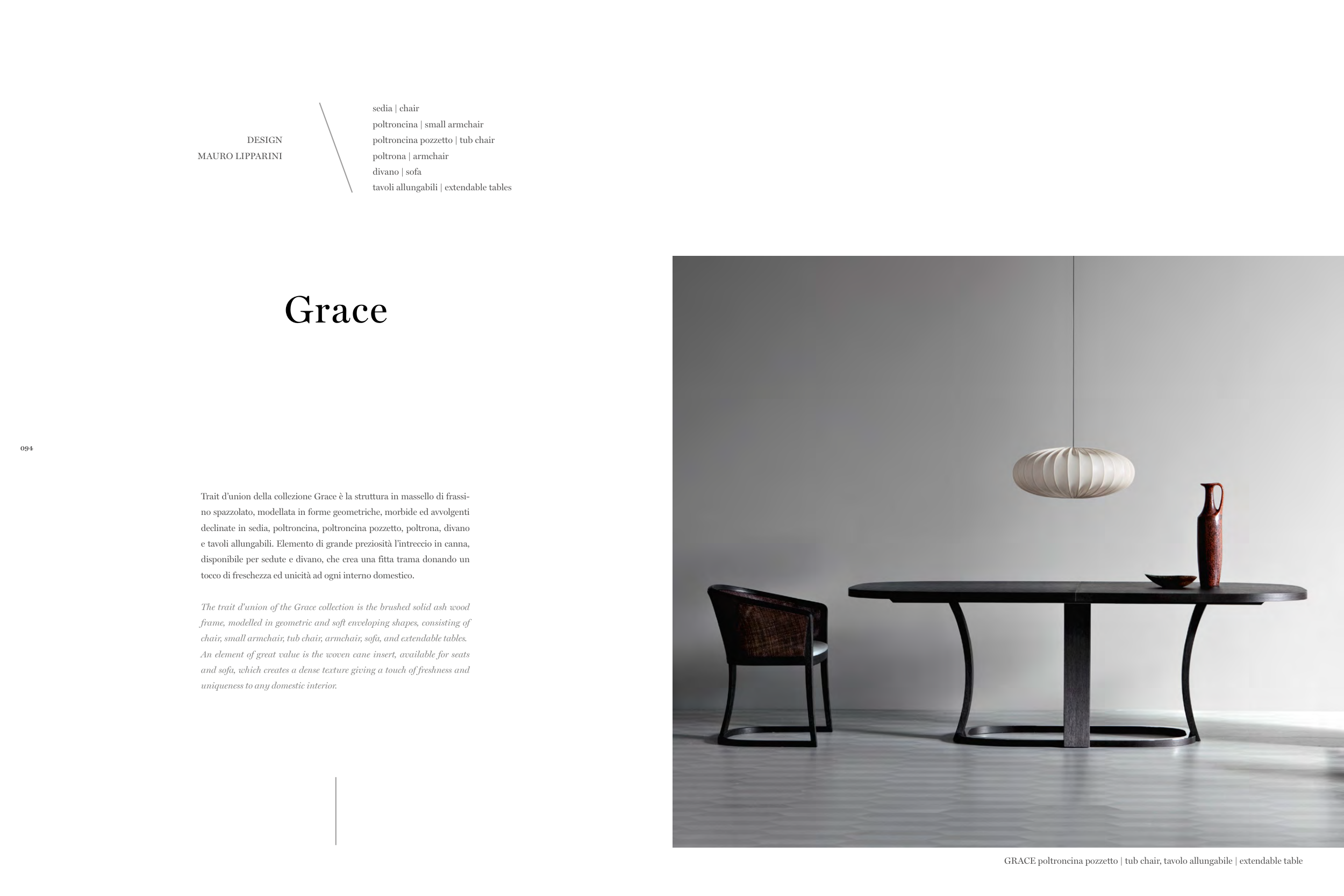 Trait d’union della collezione Grace è la struttura in massello di frassi-