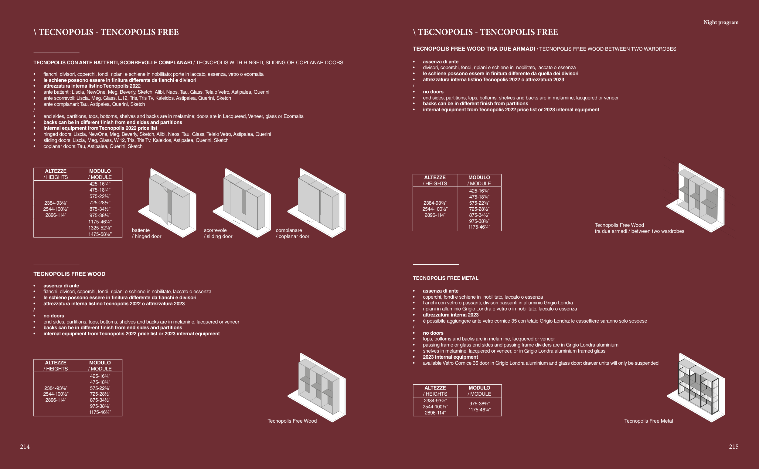 TECNOPOLIS CON ANTE BATTENTI, SCORREVOLI E COMPLANARI / TECNOPOLIS WITH HINGED, SLIDING OR COPLANAR DOORS