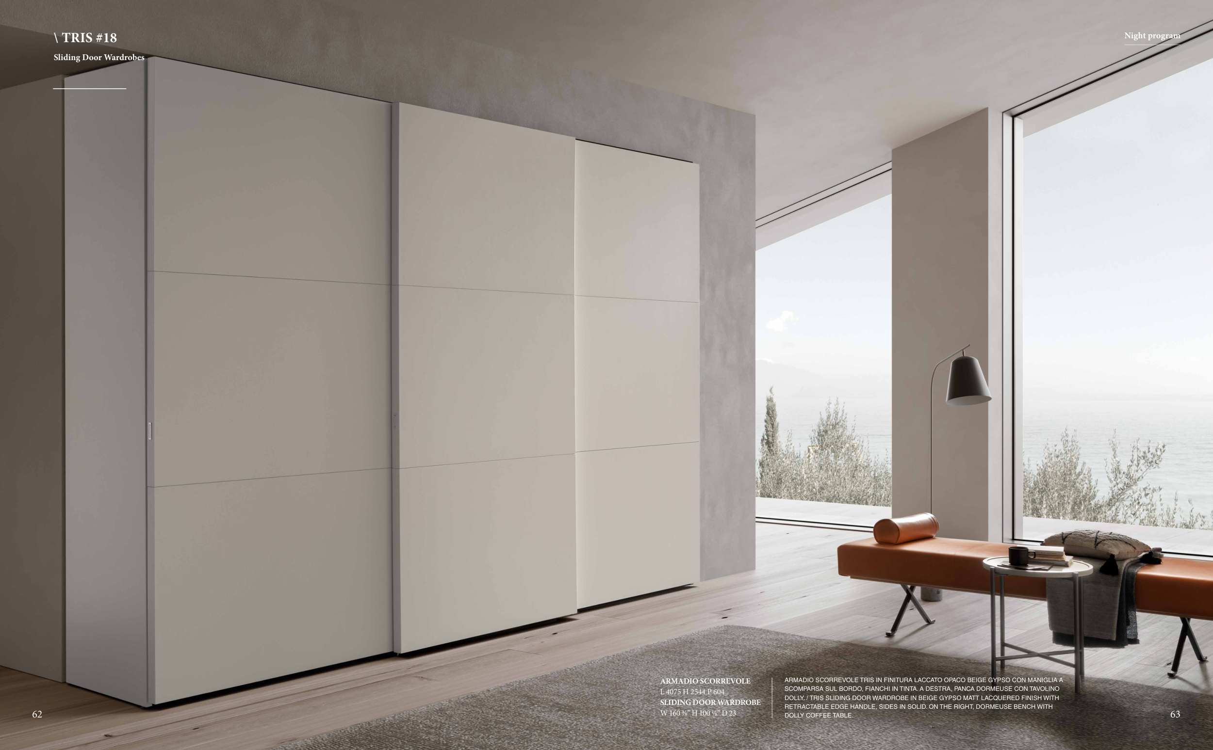 DOLLY. / TRIS SLIDING DOOR WARDROBE IN BEIGE GYPSO MATT LACQUERED FINISH WITH