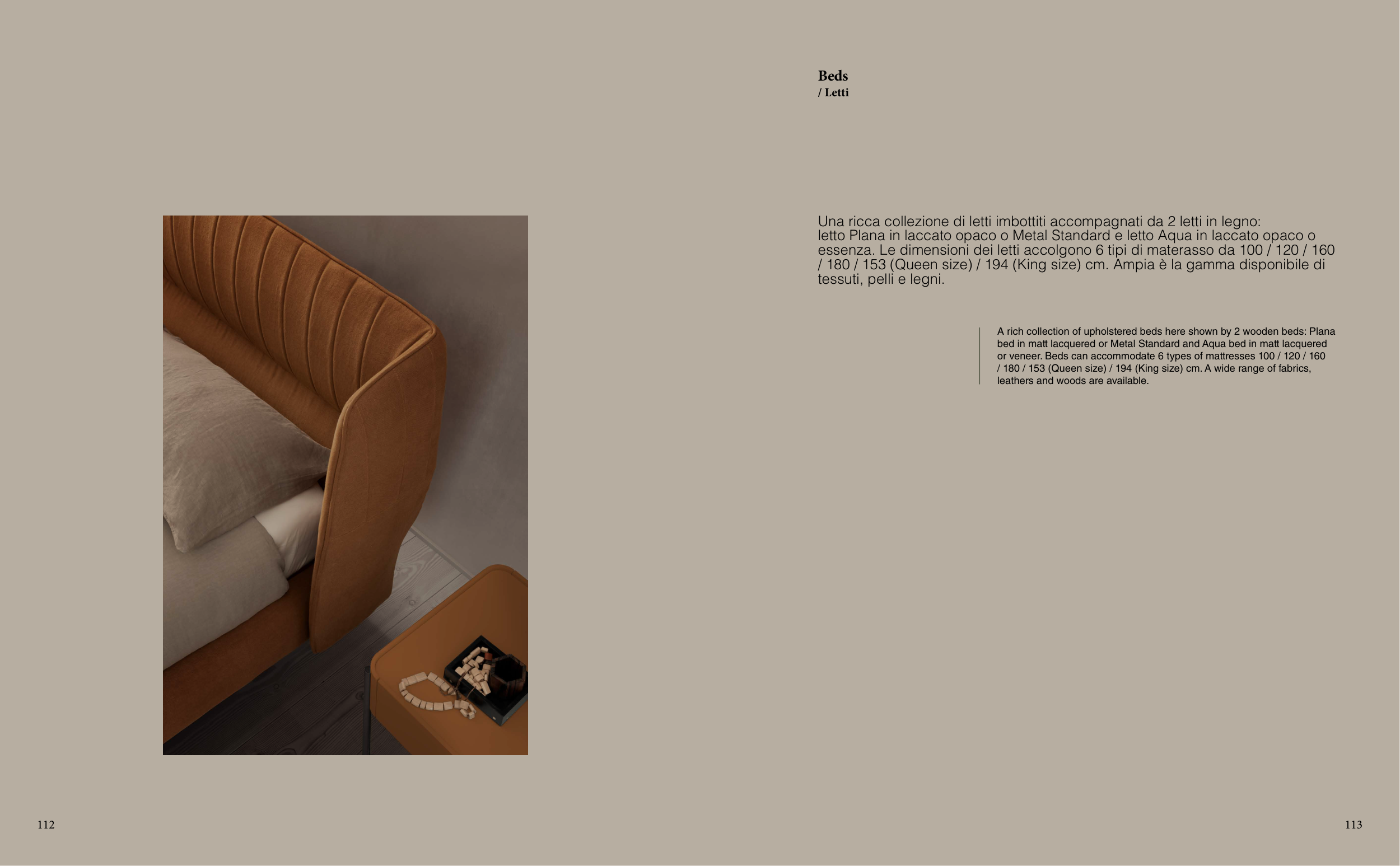 A rich collection of upholstered beds here shown by 2 wooden beds: Plana