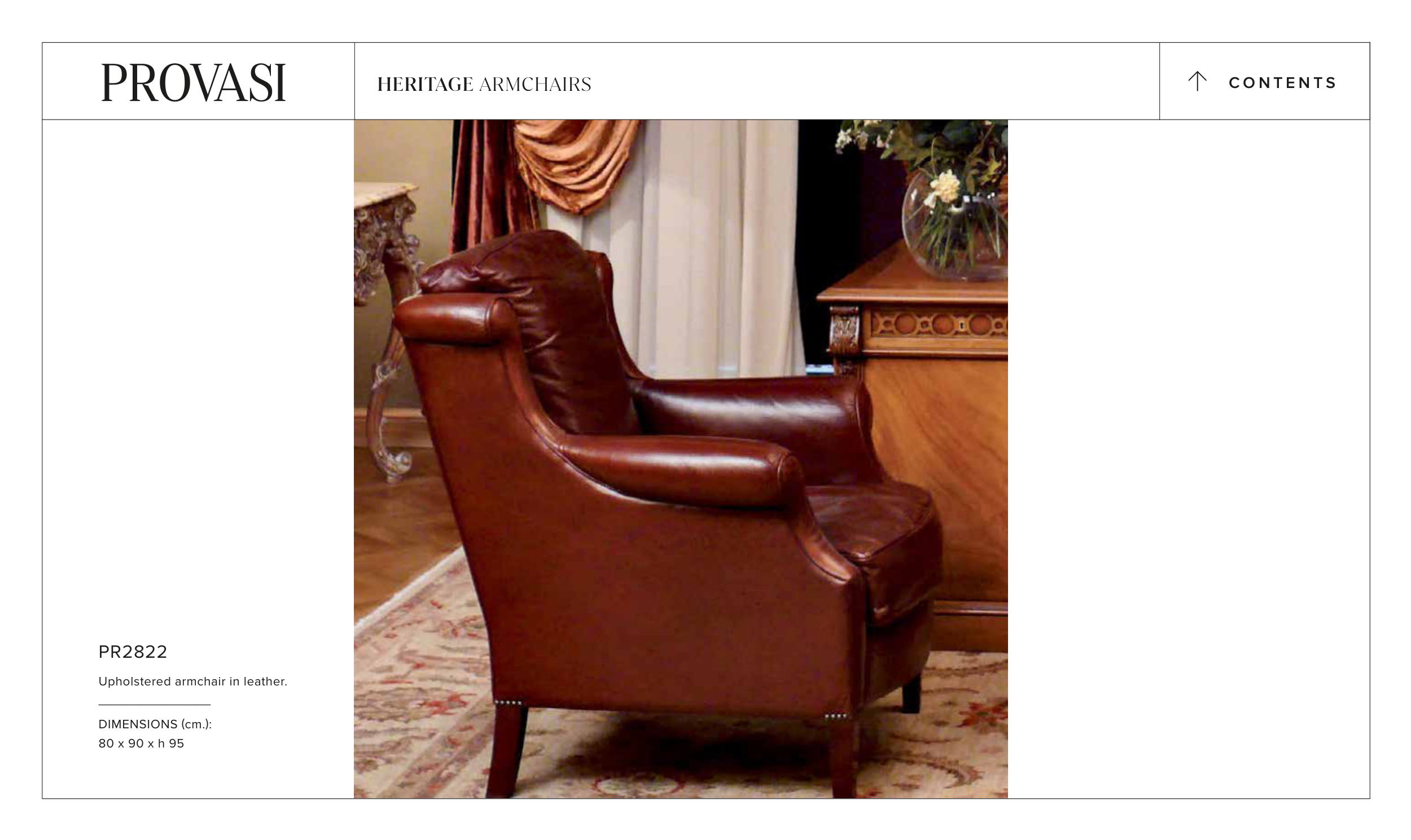 Upholstered armchair in leather.