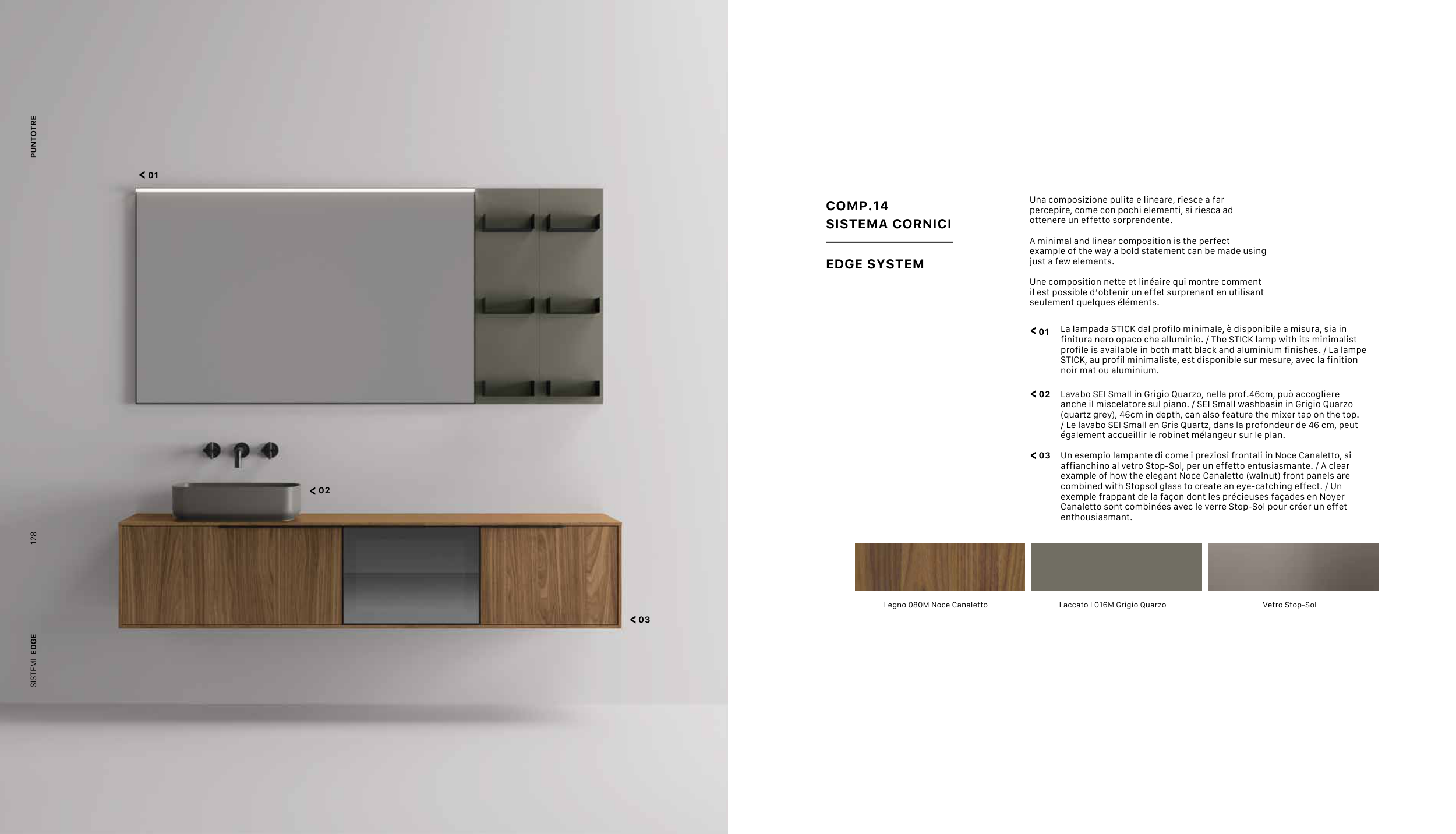 anche il miscelatore sul piano. / SEI Small washbasin in Grigio Quarzo