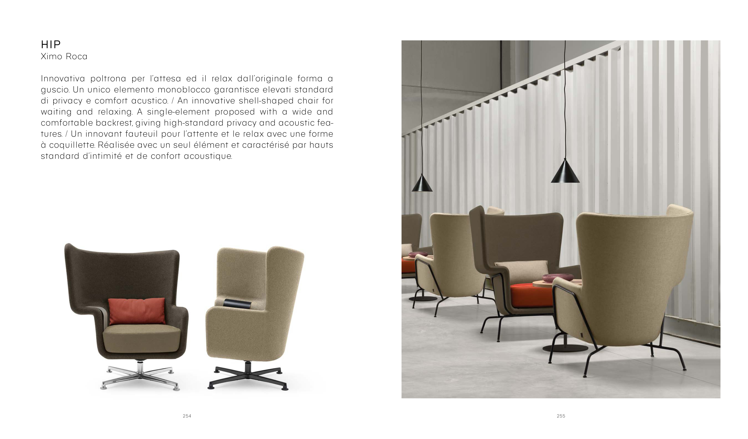 di privacy e comfort acustico. / An innovative shell-shaped chair for