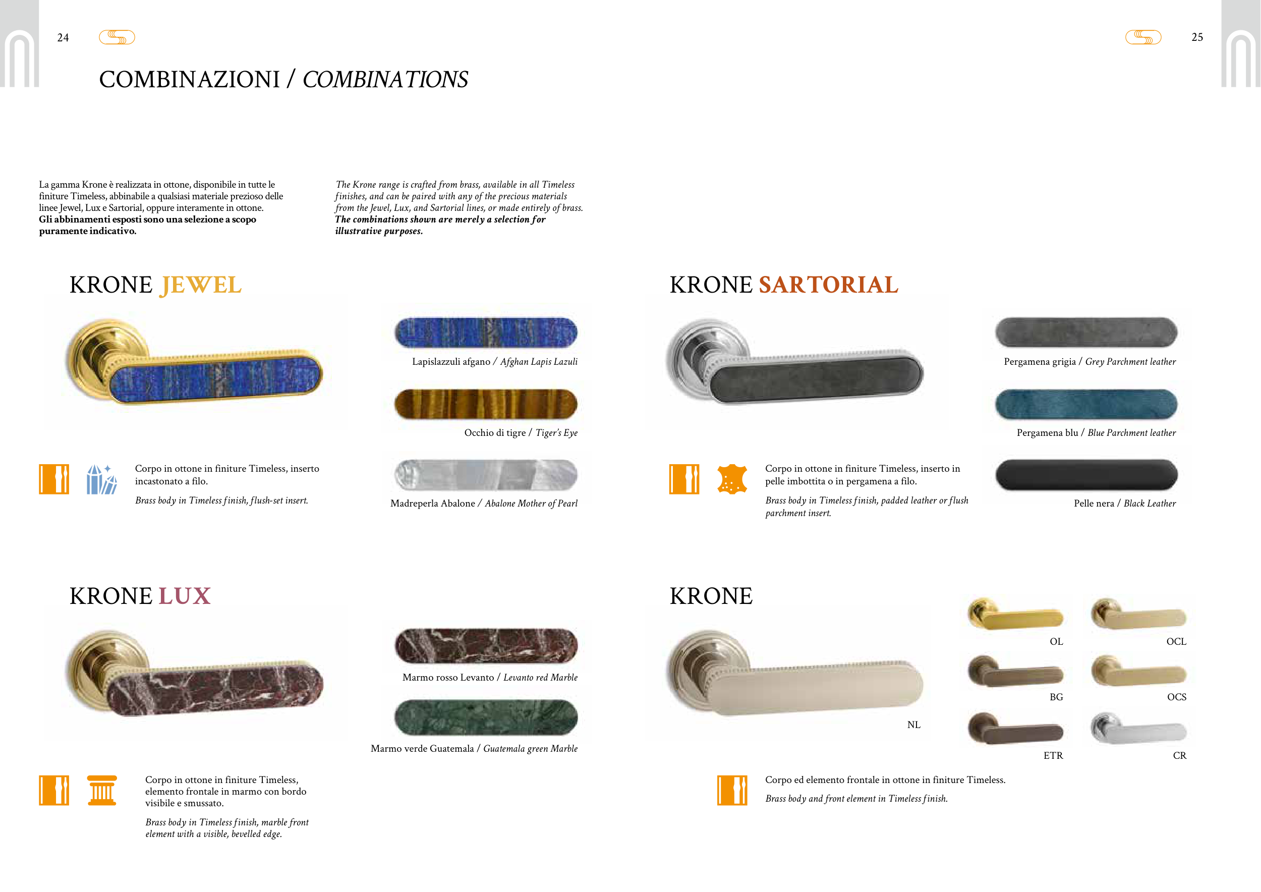 The Krone range is crafted from brass, available in all Timeless