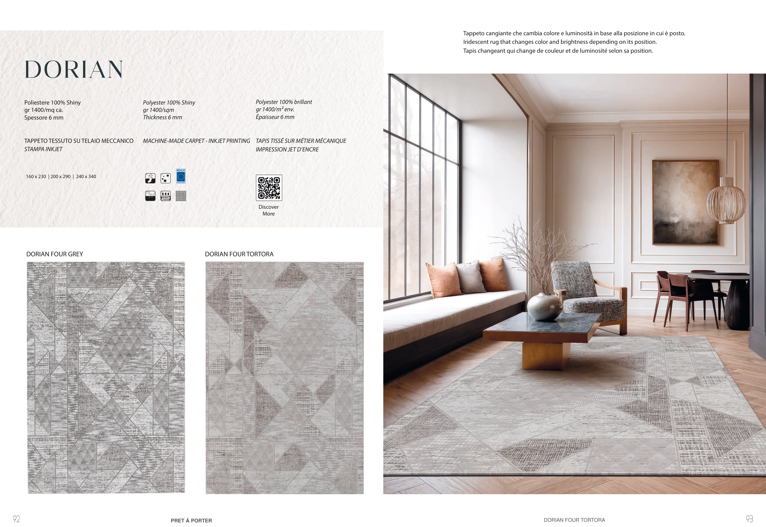 Tappeto cangiante che cambia colore e luminosità in base alla posizione in cui è posto.