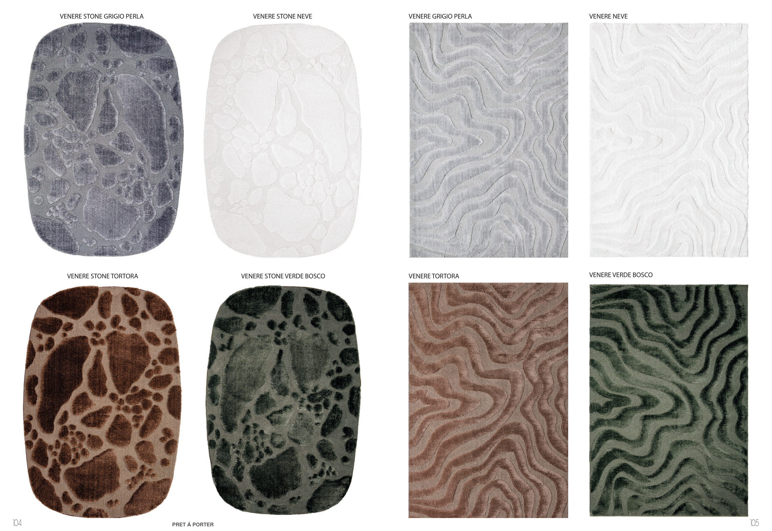 VENERE VERDE BOSCO VENERE STONE NEVE VENERE STONE VERDE BOSCO VENERE STONE TORTORA VENERE STONE GRIGIO PERLA VENERE NEVE VENERE TORTORA VENERE GRIGIO PERLA PRET Á PORTER 104 105