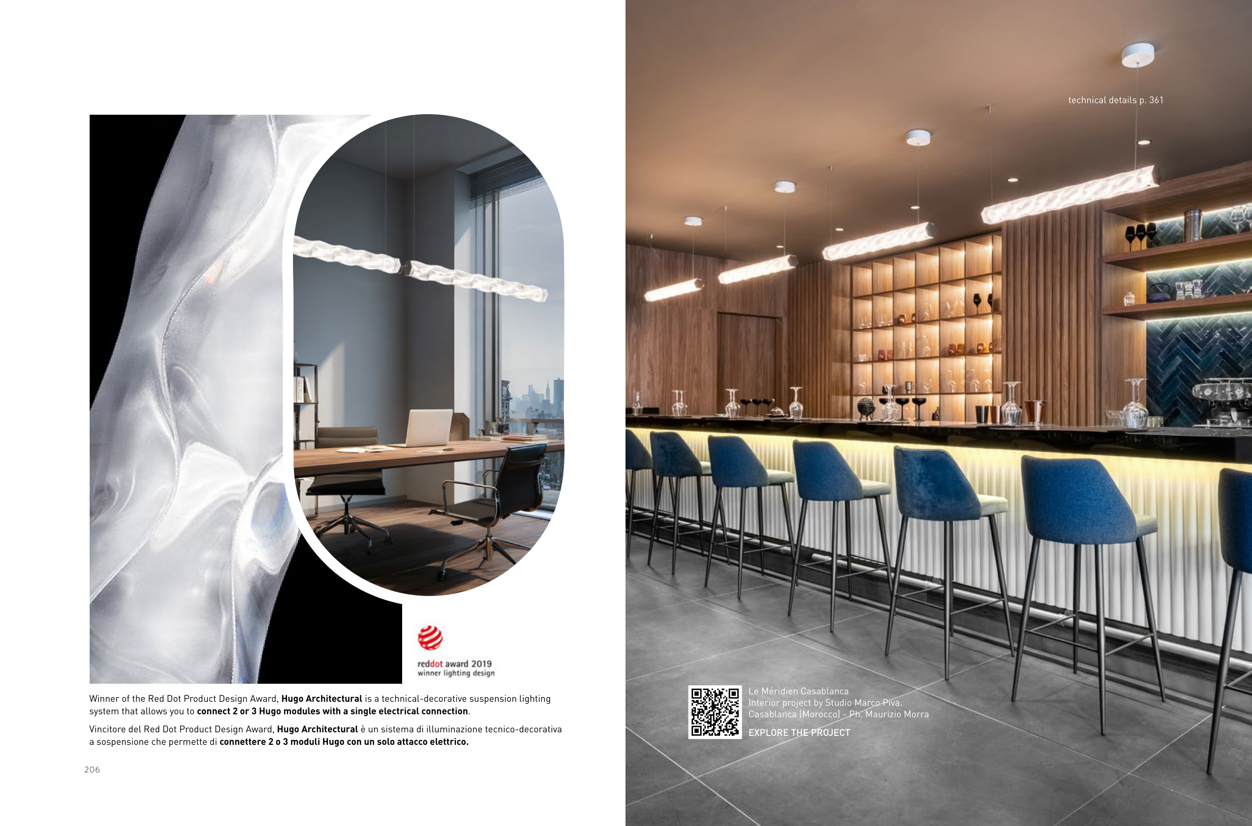 Winner of the Red Dot Product Design Award, Hugo Architectural is a technical-decorative suspension lighting