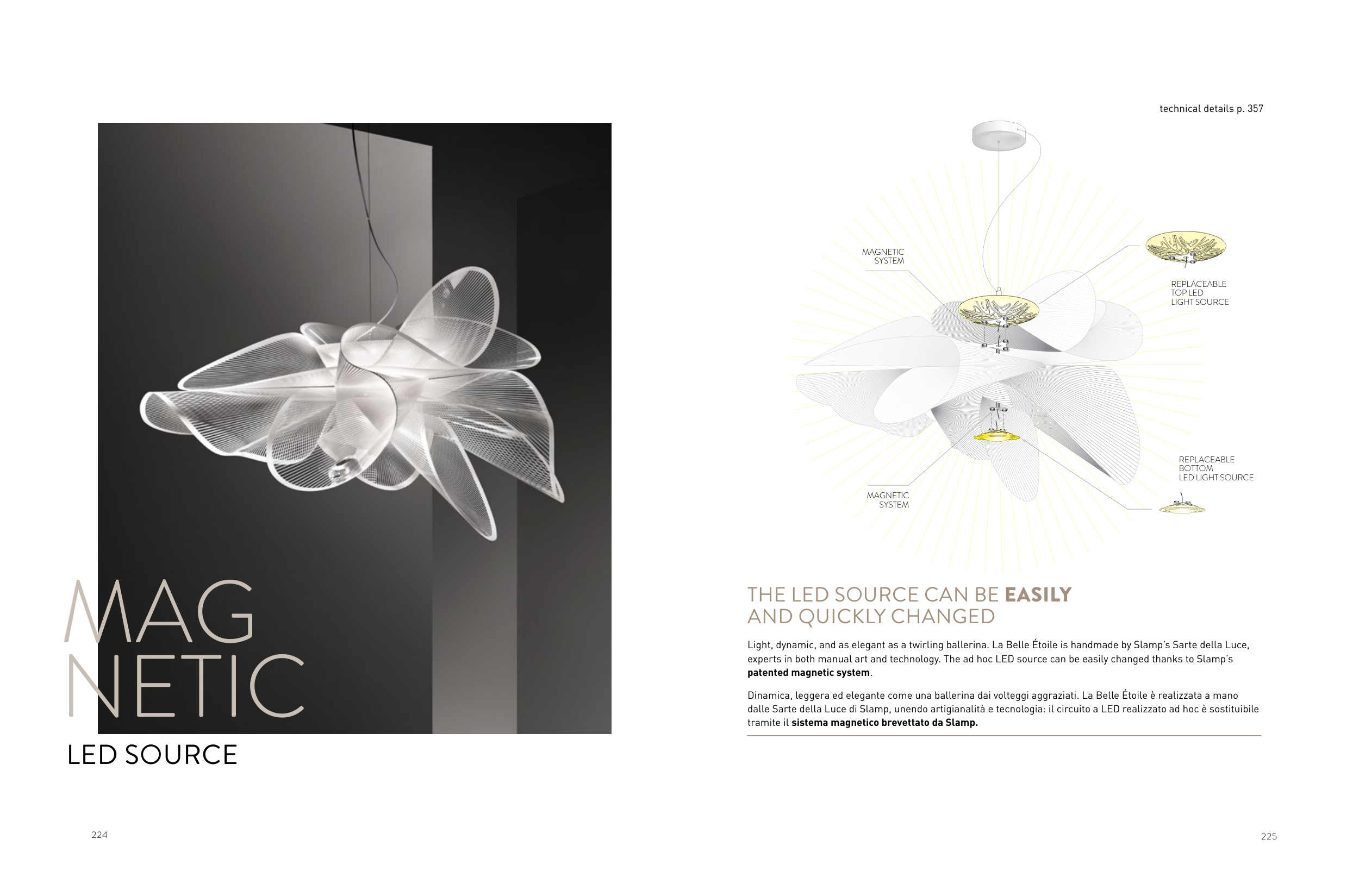 experts in both manual art and technology. The ad hoc LED source can be easily changed thanks to Slamp’s
