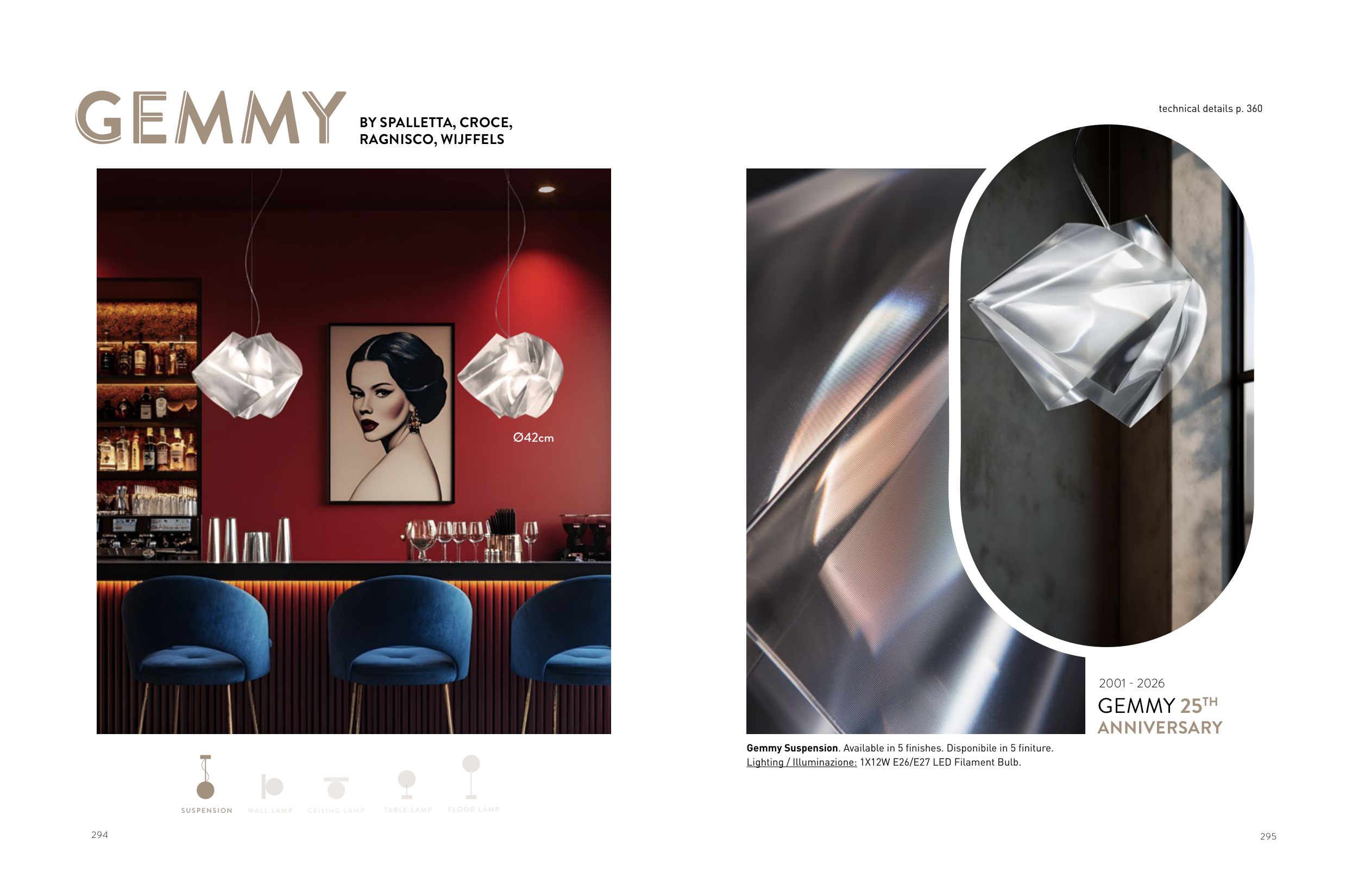 Gemmy Suspension. Available in 5 finishes. Disponibile in 5 finiture.