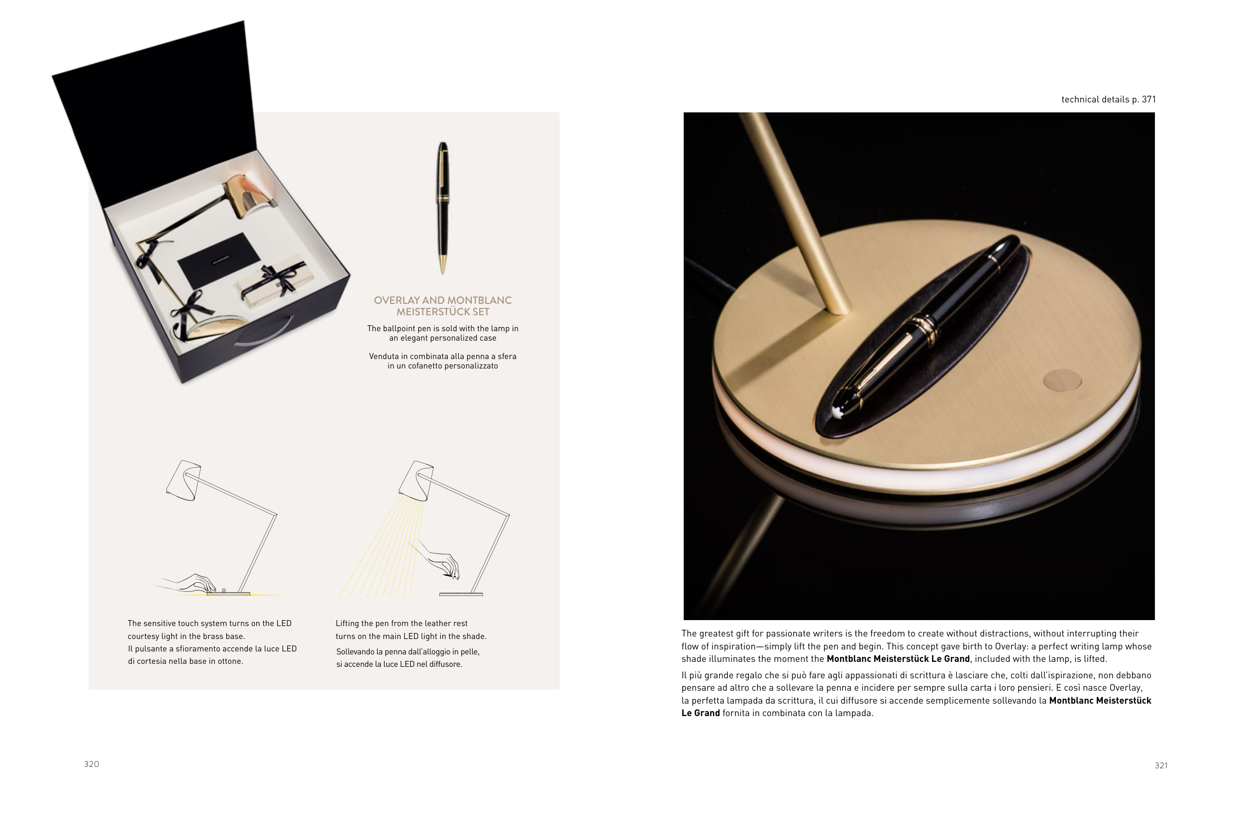 shade illuminates the moment the Montblanc Meisterstück Le Grand, included with the lamp, is lifted.