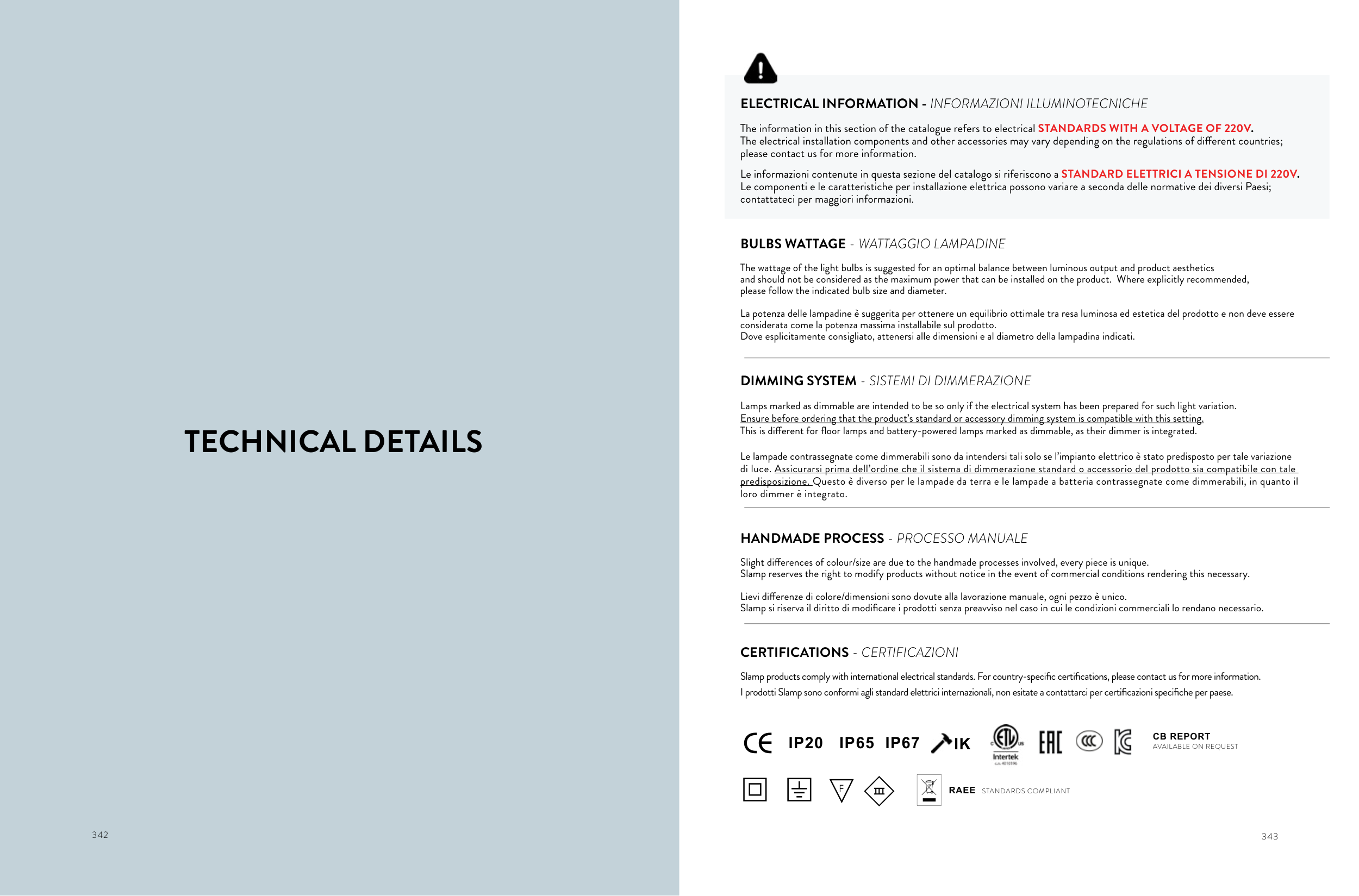 I prodotti Slamp sono conformi agli standard elettrici internazionali, non esitate a contattarci per certificazioni specifiche per paese.