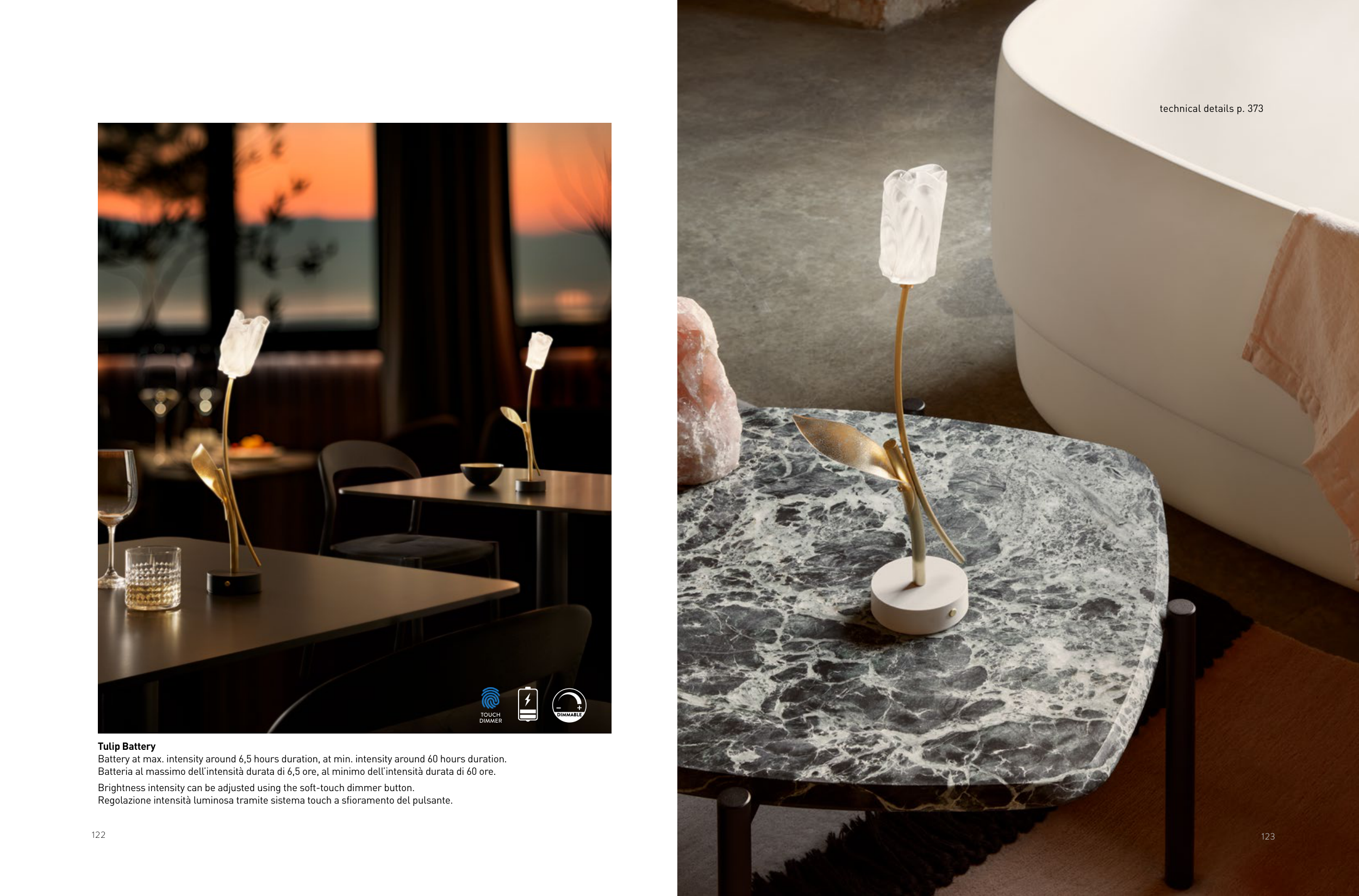 Brightness intensity can be adjusted using the soft-touch dimmer button.