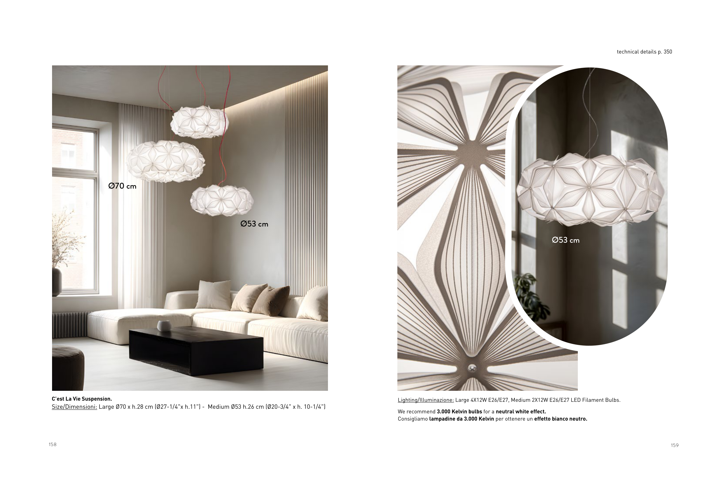 Lighting/Illuminazione: Large 4X12W E26/E27, Medium 2X12W E26/E27 LED Filament Bulbs.