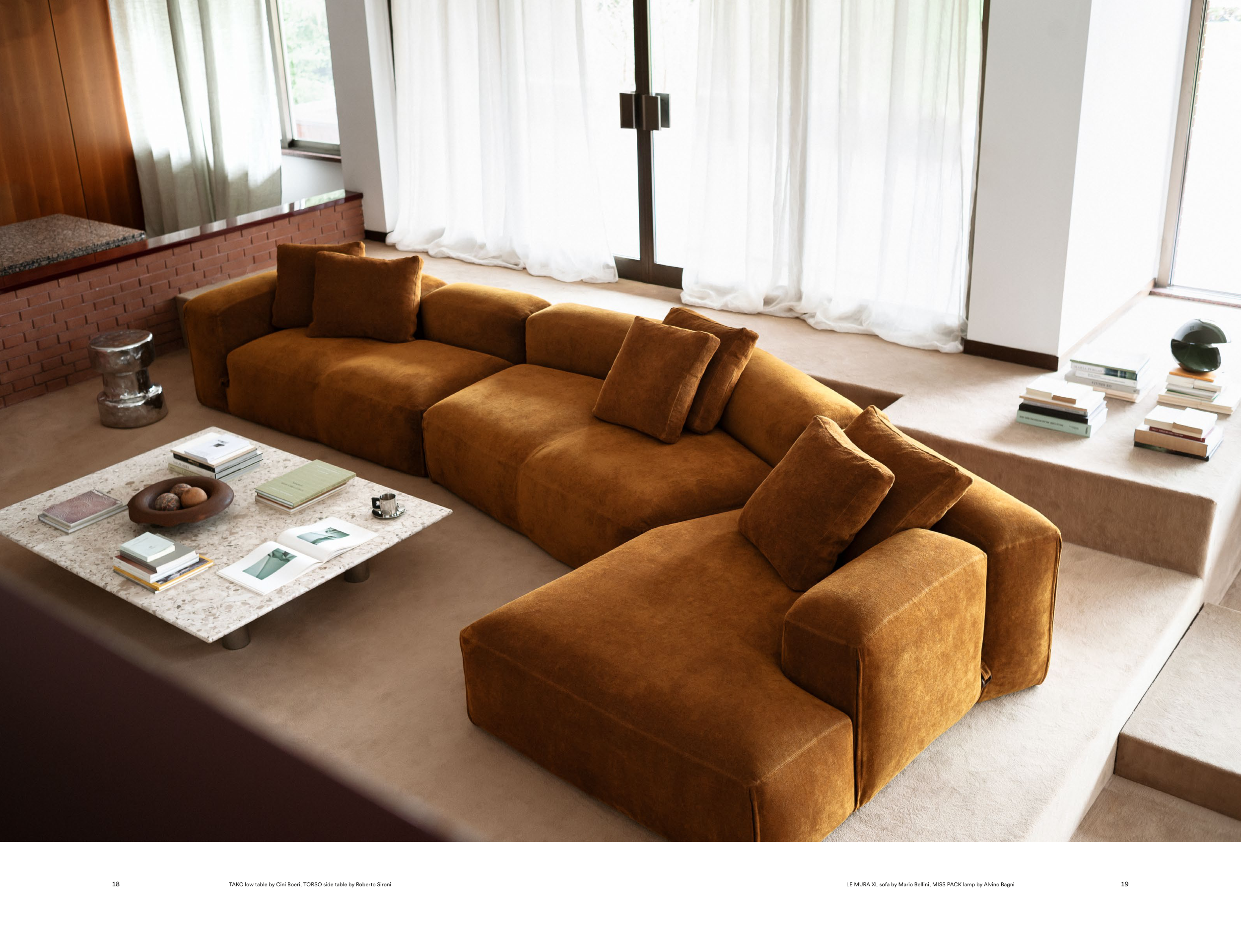 LE MURA XL sofa by Mario Bellini, MISS PACK lamp by Alvino Bagni