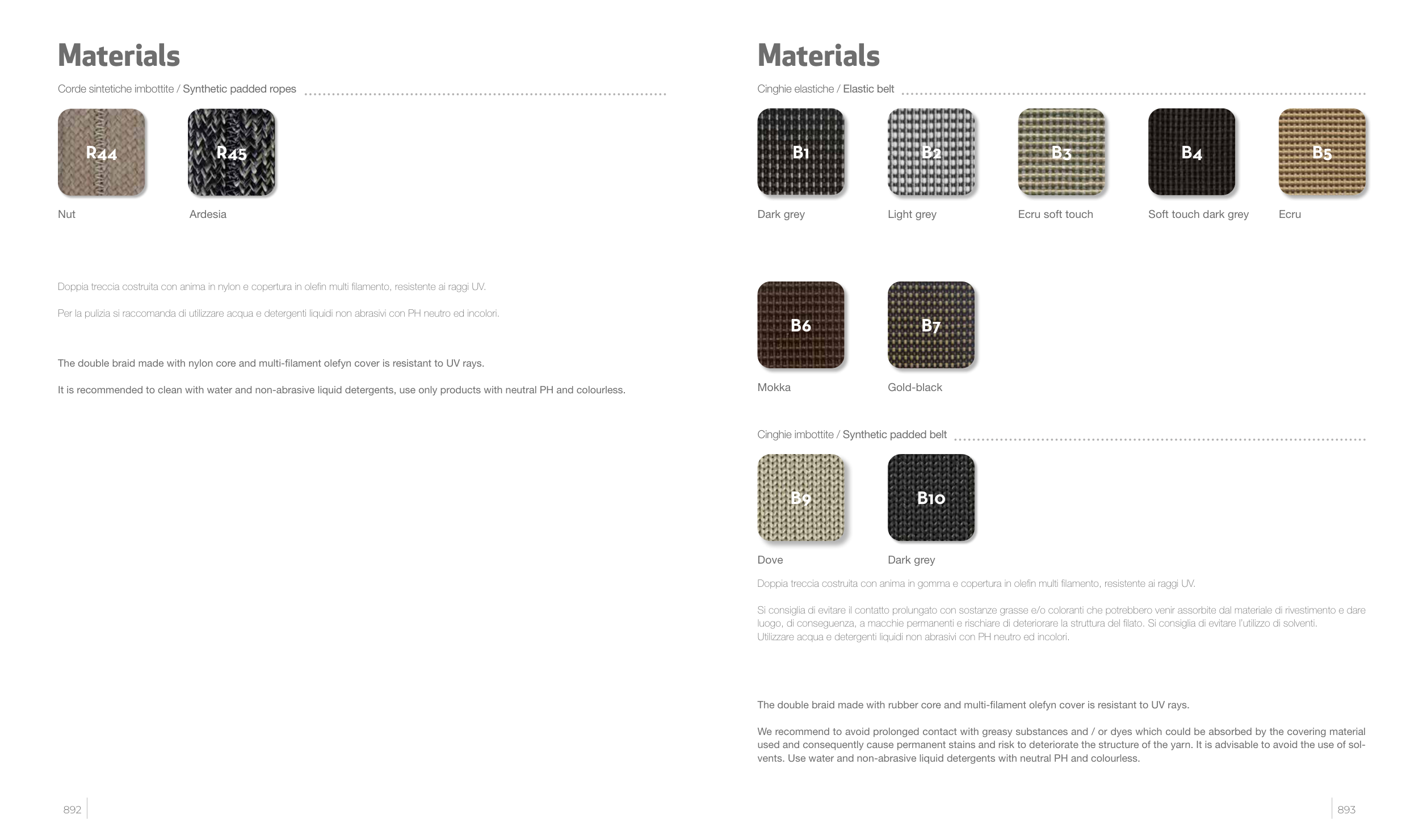 Doppia treccia costruita con anima in nylon e copertura in olefin multi filamento, resistente ai raggi UV.