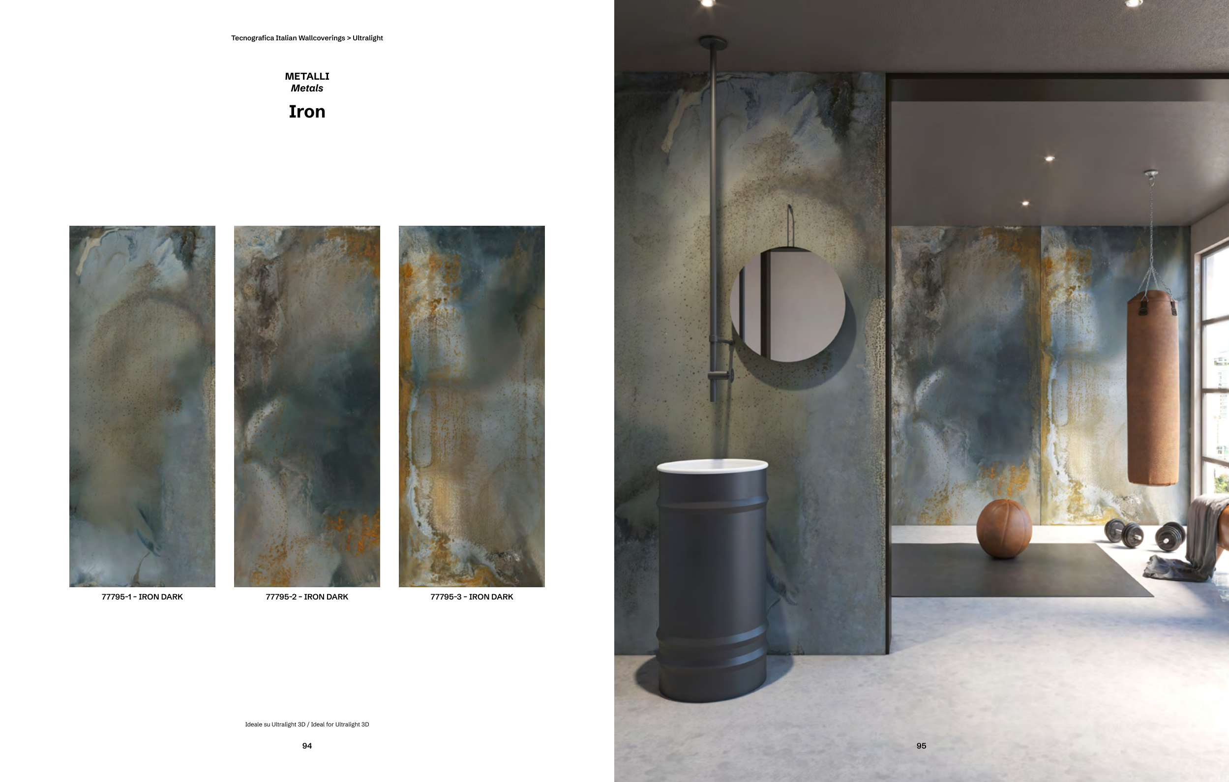 77795-1 – IRON DARK 77795-2 – IRON DARK 77795-3 – IRON DARK METALLI Metals Iron Ideale su Ultralight 3D / Ideal for Ultralight 3D 95 94 Tecnografica Italian Wallcoverings > Ultralight