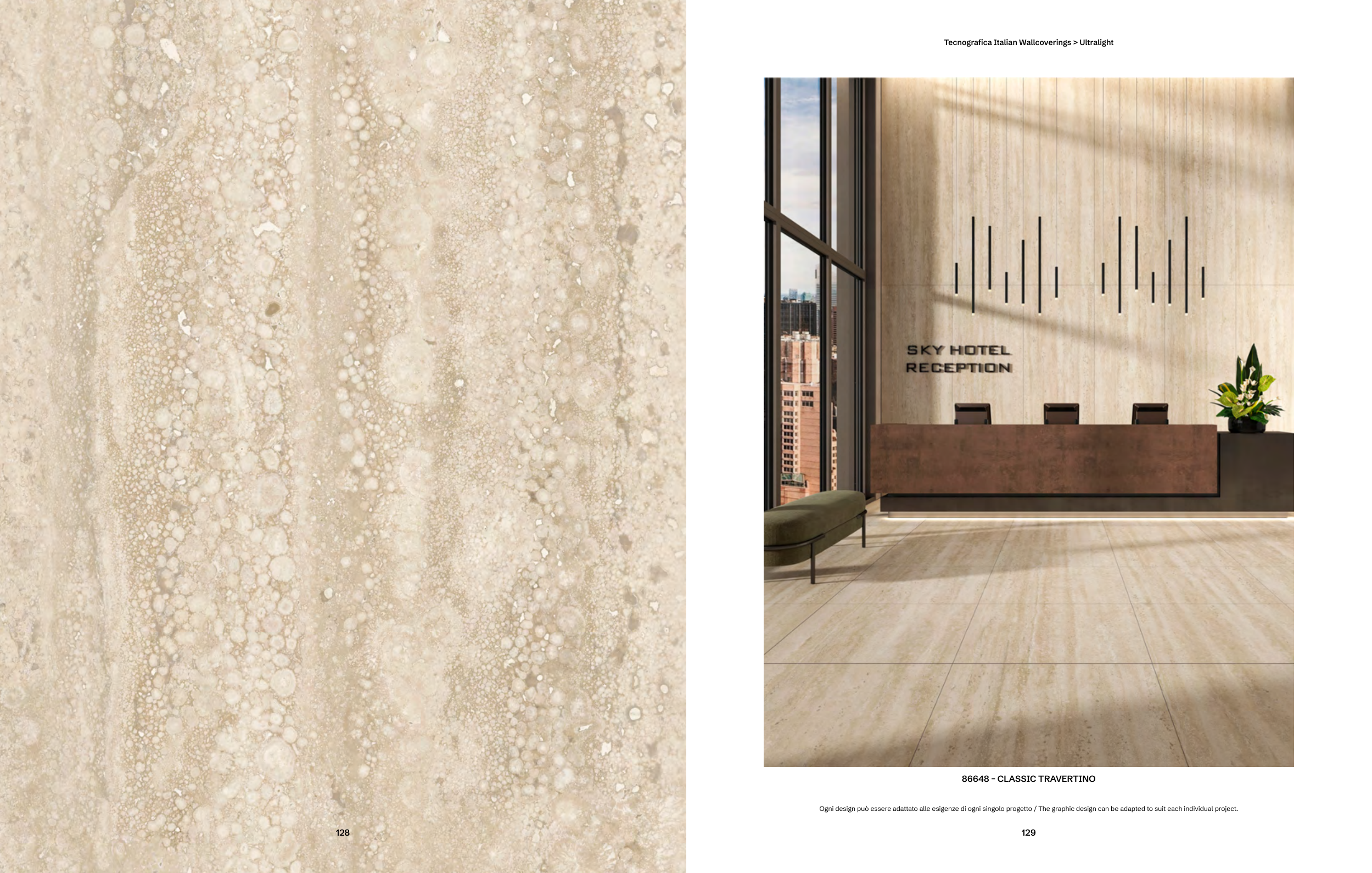 86648 – CLASSIC TRAVERTINO Ogni design può essere adattato alle esigenze di ogni singolo progetto / The graphic design can be adapted to suit each individual project. 129 Tecnografica Italian Wallcoverings > Ultralight 128