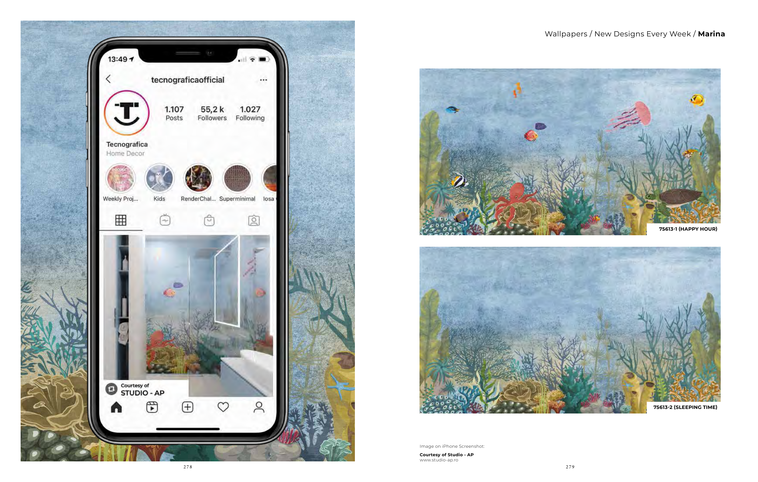 2 7 8 279 Image on iPhone Screenshot: Courtesy of Studio - AP www.studio-ap.ro Wallpapers / New Designs Every Week / Marina 75613-1 (HAPPY HOUR) 75613-2 (SLEEPING TIME)