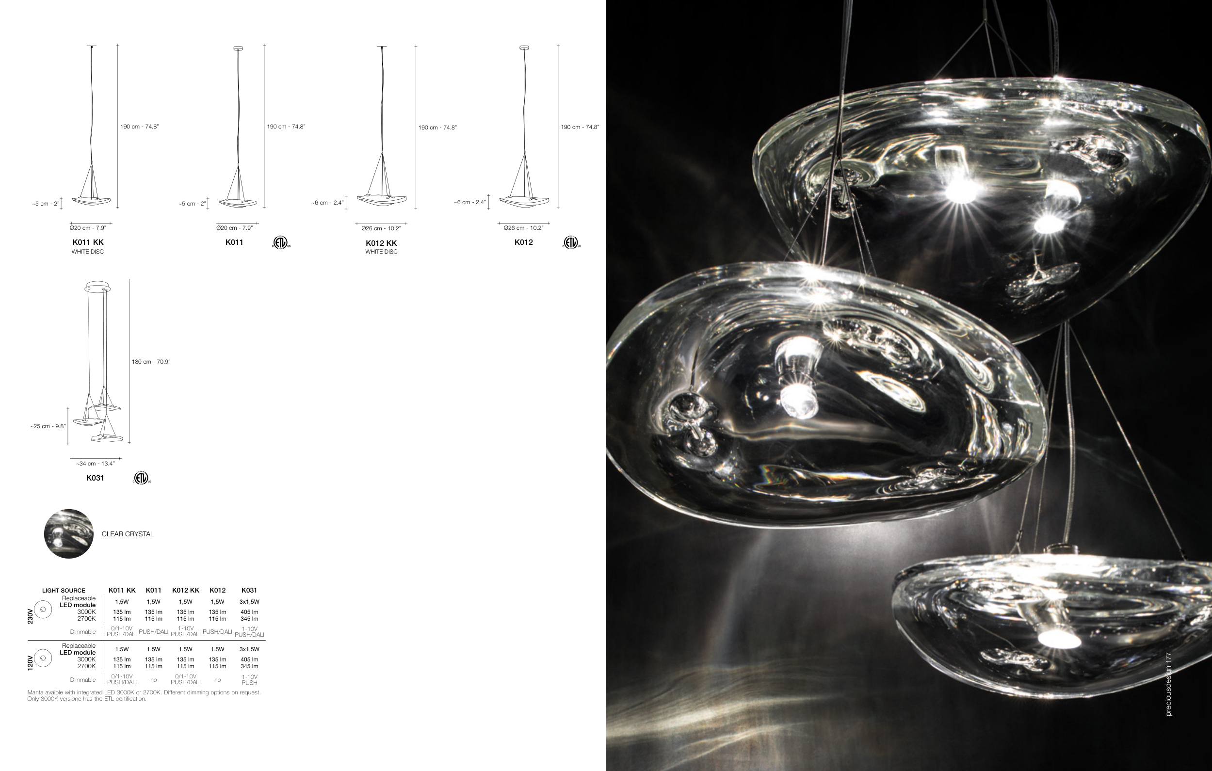 Manta avaible with integrated LED 3000K or 2700K. Different dimming options on request.
