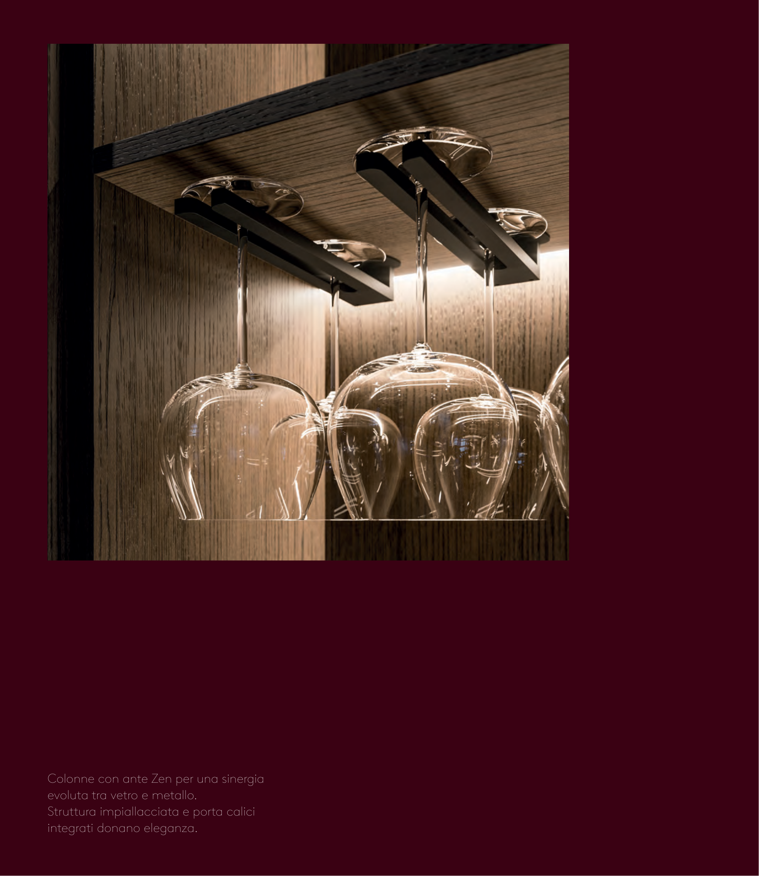 Colonne con ante Zen per una sinergia evoluta tra vetro e metallo. Struttura impiallacciata e porta calici integrati donano eleganza. 375178_CATALOGO IMPAGINATO_4_ITA.indd 54 375178_CATALOGO IMPAGINATO_4_ITA.indd 54 20/11/23 10:01 20/11/23 10:01