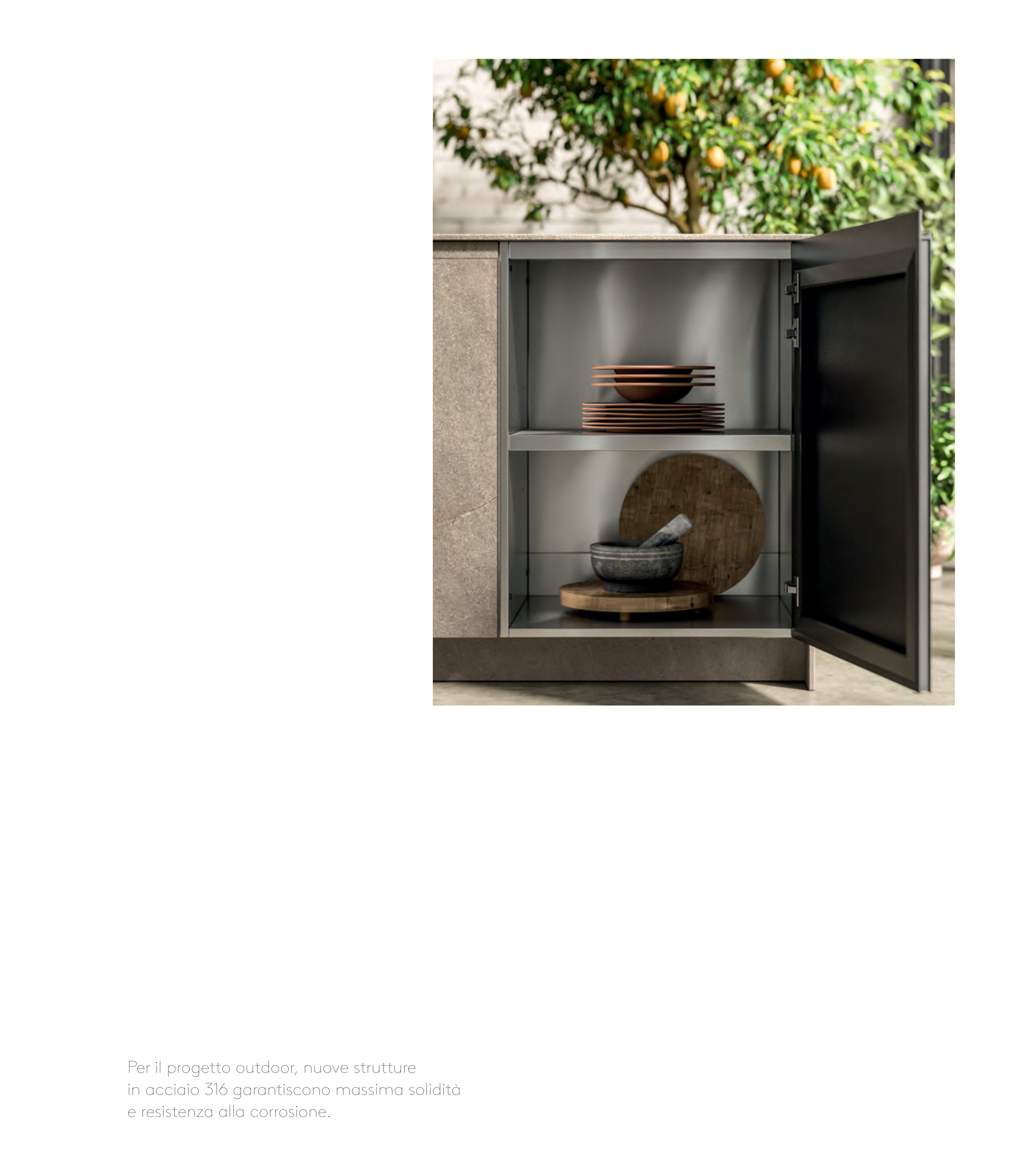 Per il progetto outdoor, nuove strutture in acciaio 316 garantiscono massima solidità e resistenza alla corrosione. 375178_CATALOGO IMPAGINATO_4_ITA.indd 79 375178_CATALOGO IMPAGINATO_4_ITA.indd 79 01/12/23 14:08 01/12/23 14:08