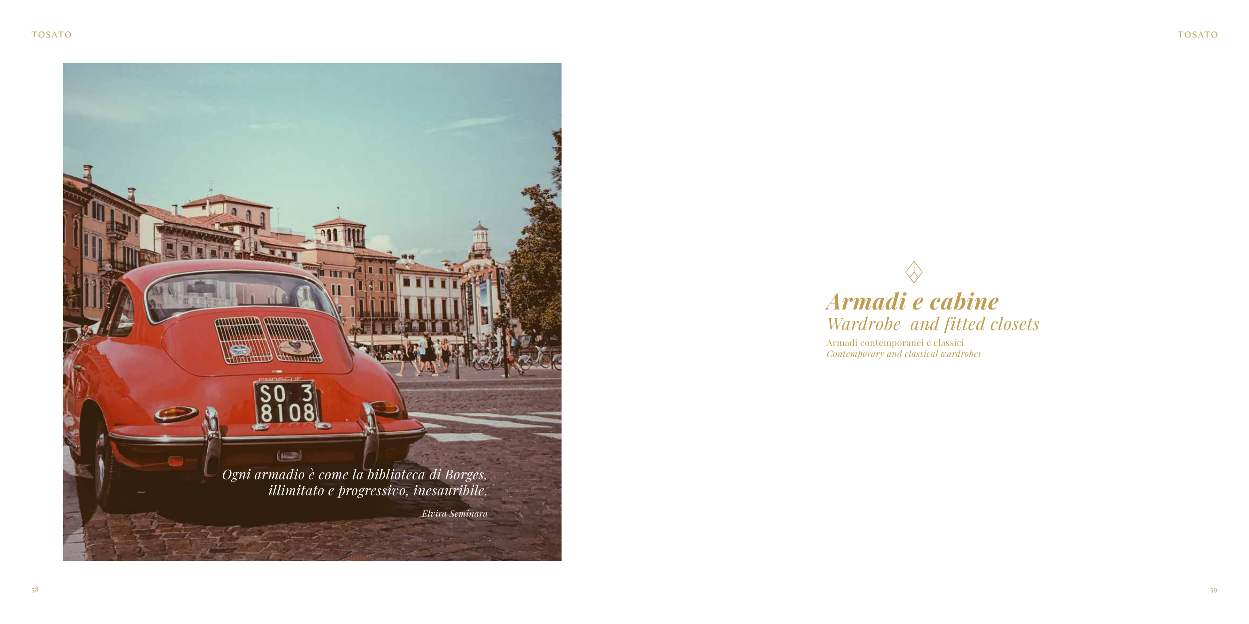 58 59 Ogni armadio è come la biblioteca di Borges, illimitato e progressivo, inesauribile. Elvira Seminara Armadi e cabine Wardrobe and fitted closets Armadi contemporanei e classici Contemporary and classical wardrobes