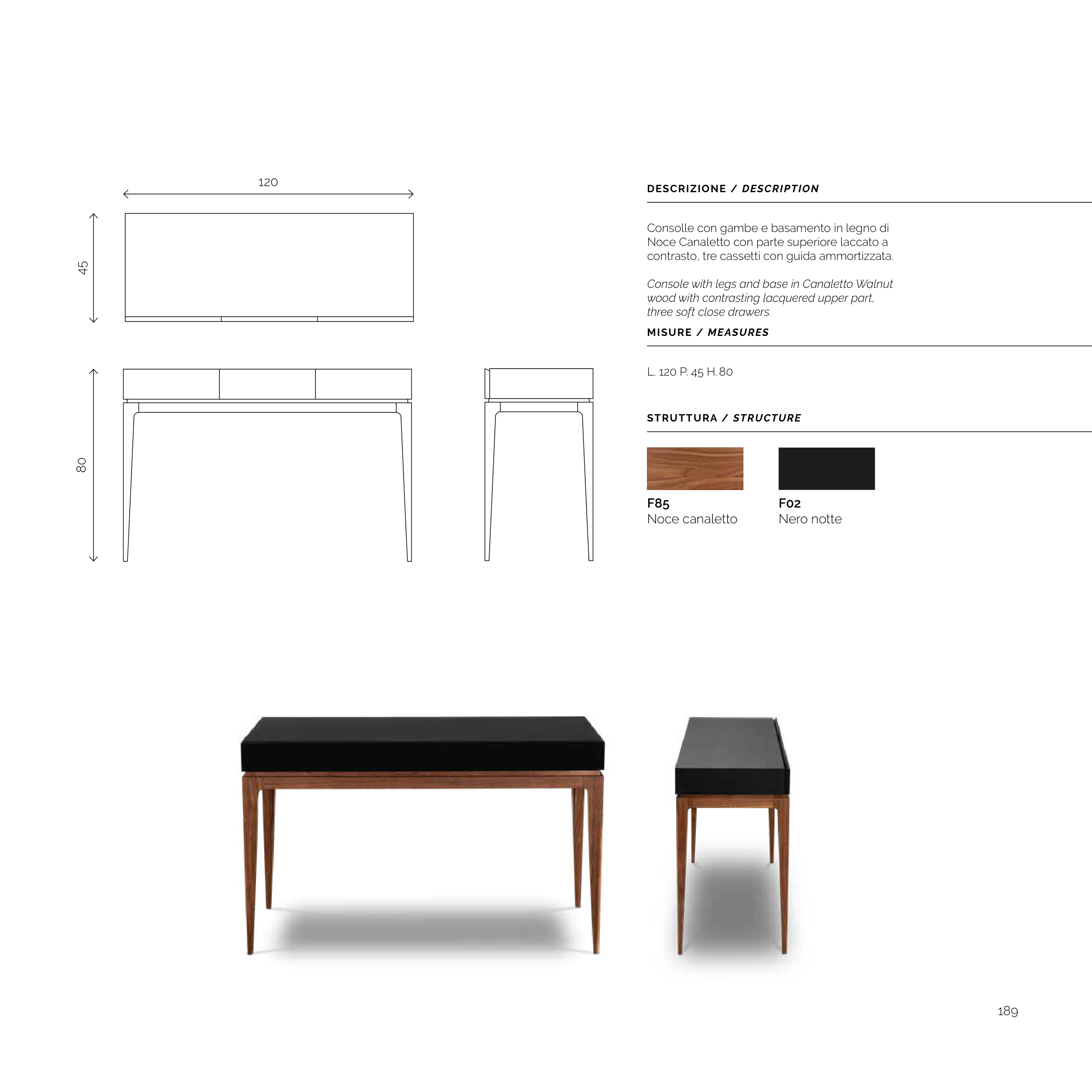 Console with legs and base in Canaletto Walnut