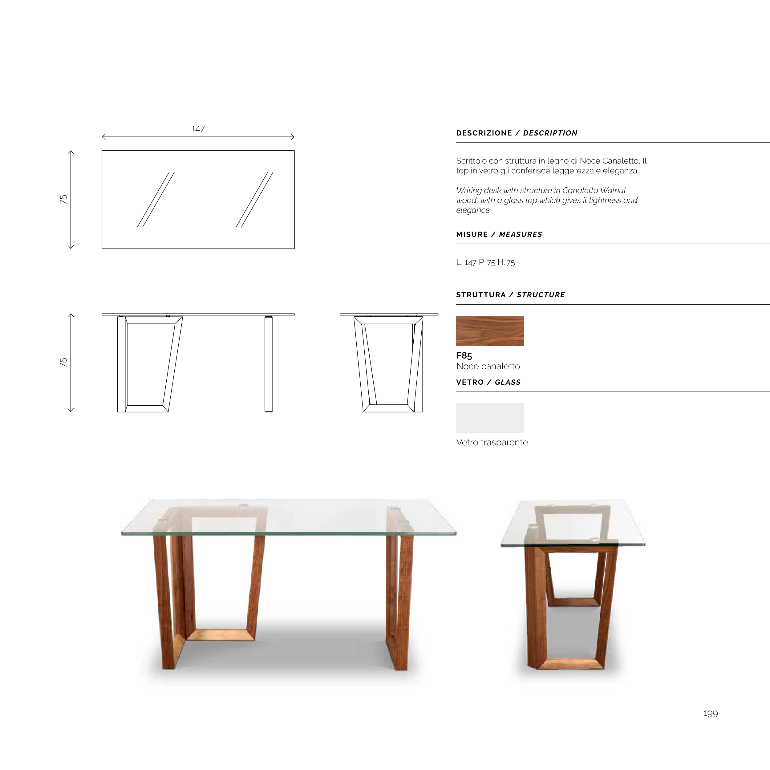 Scrittoio con struttura in legno di Noce Canaletto, Il