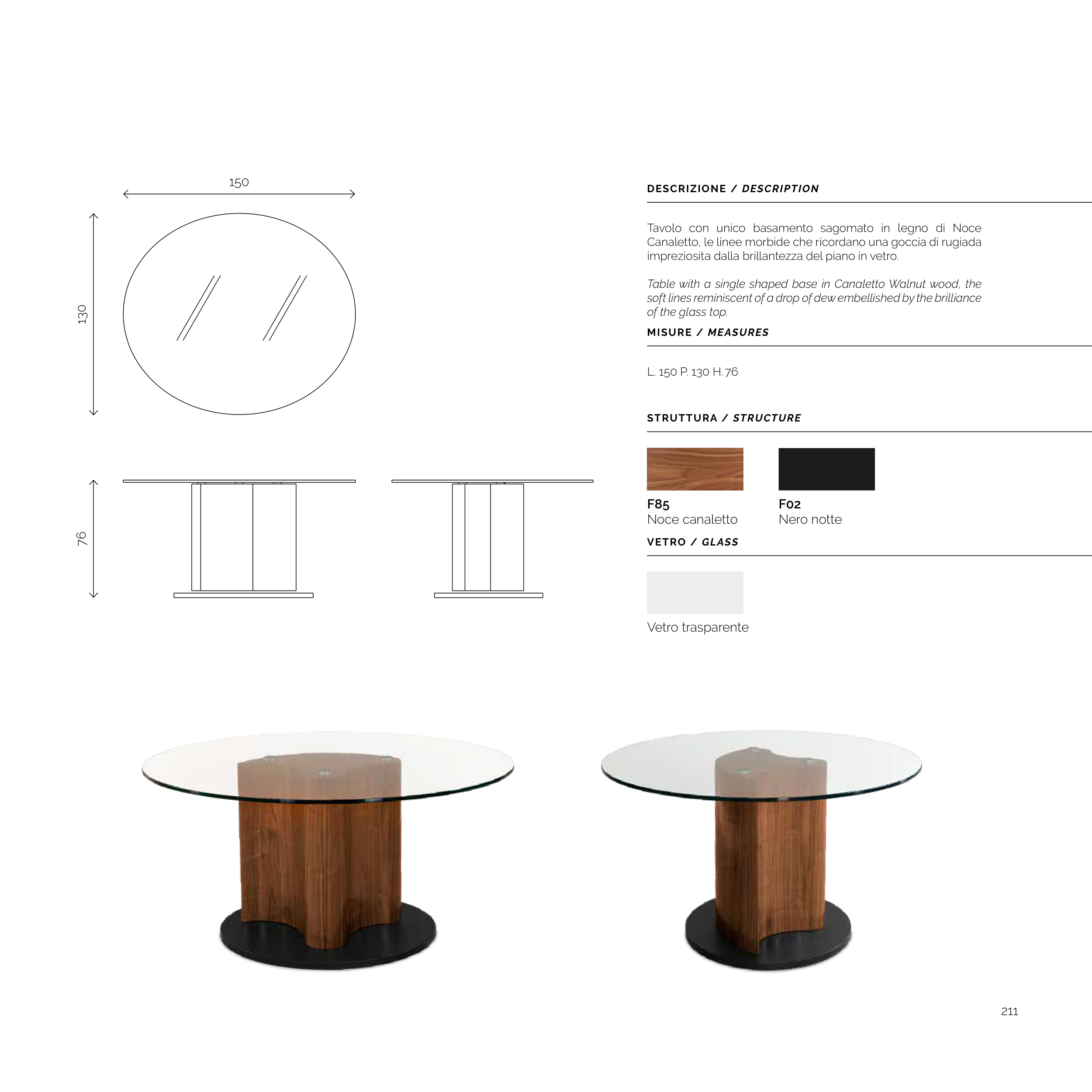 Table with a single shaped base in Canaletto Walnut wood, the