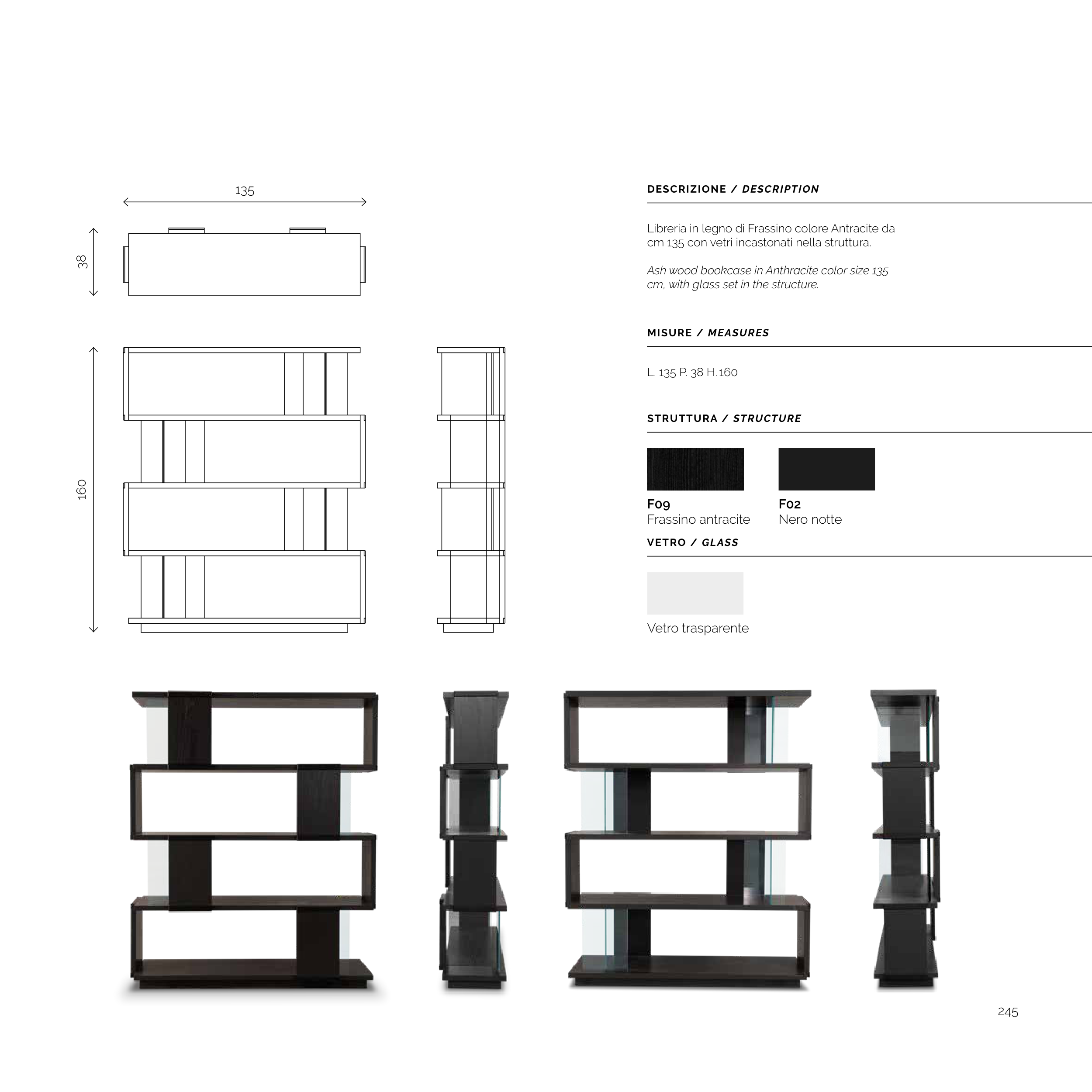 Libreria in legno di Frassino colore Antracite da
