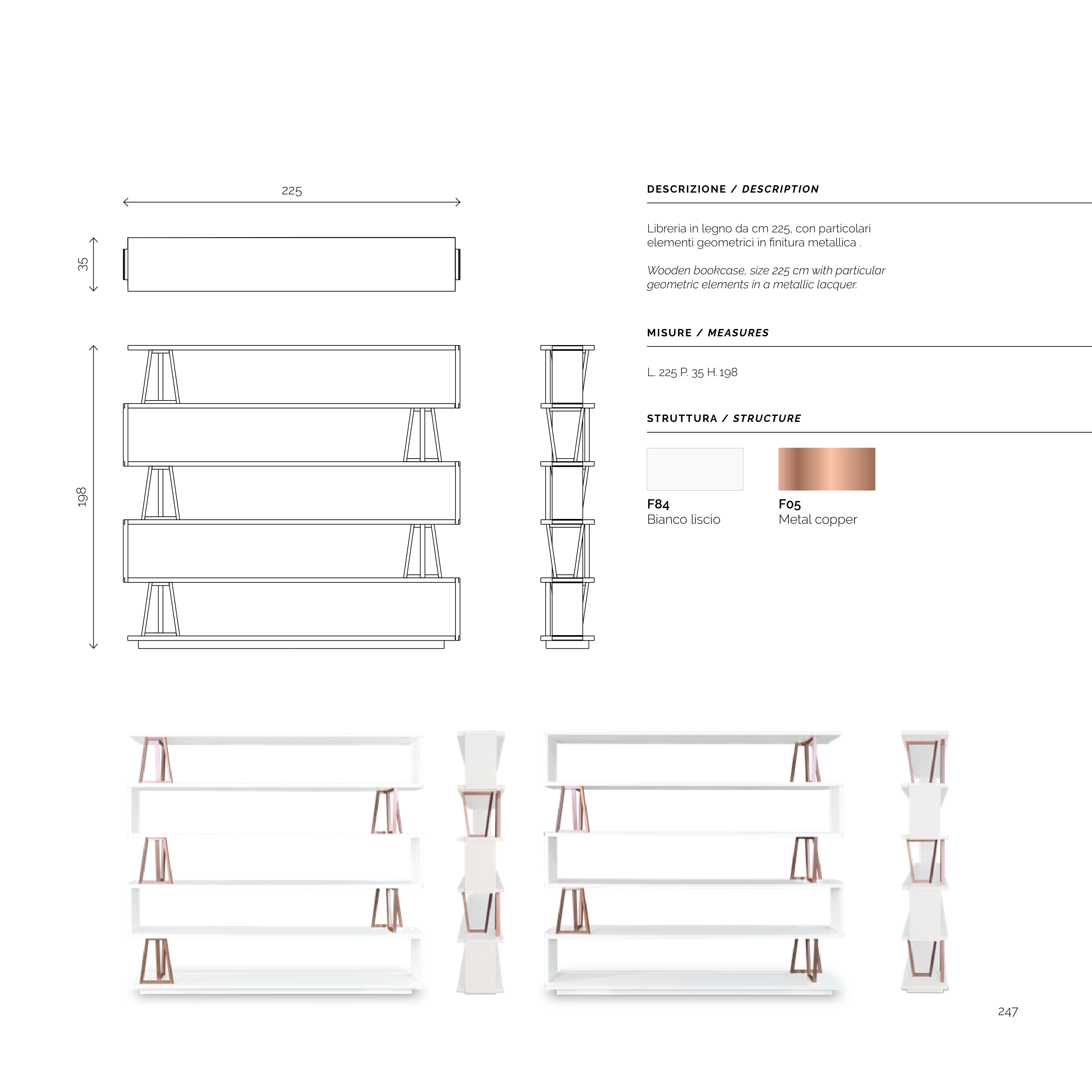 Libreria in legno da cm 225, con particolari