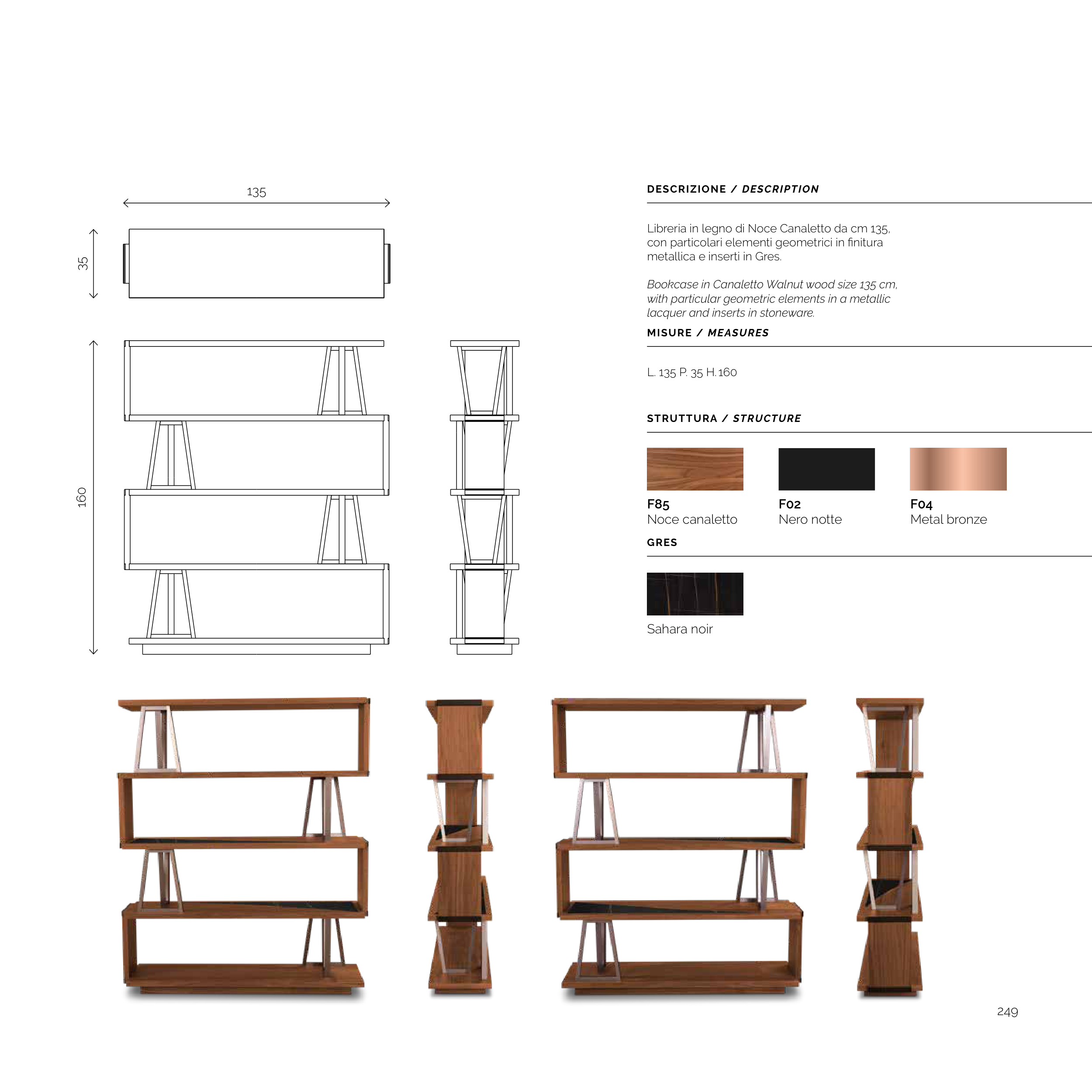 Bookcase in Canaletto Walnut wood size 135 cm,