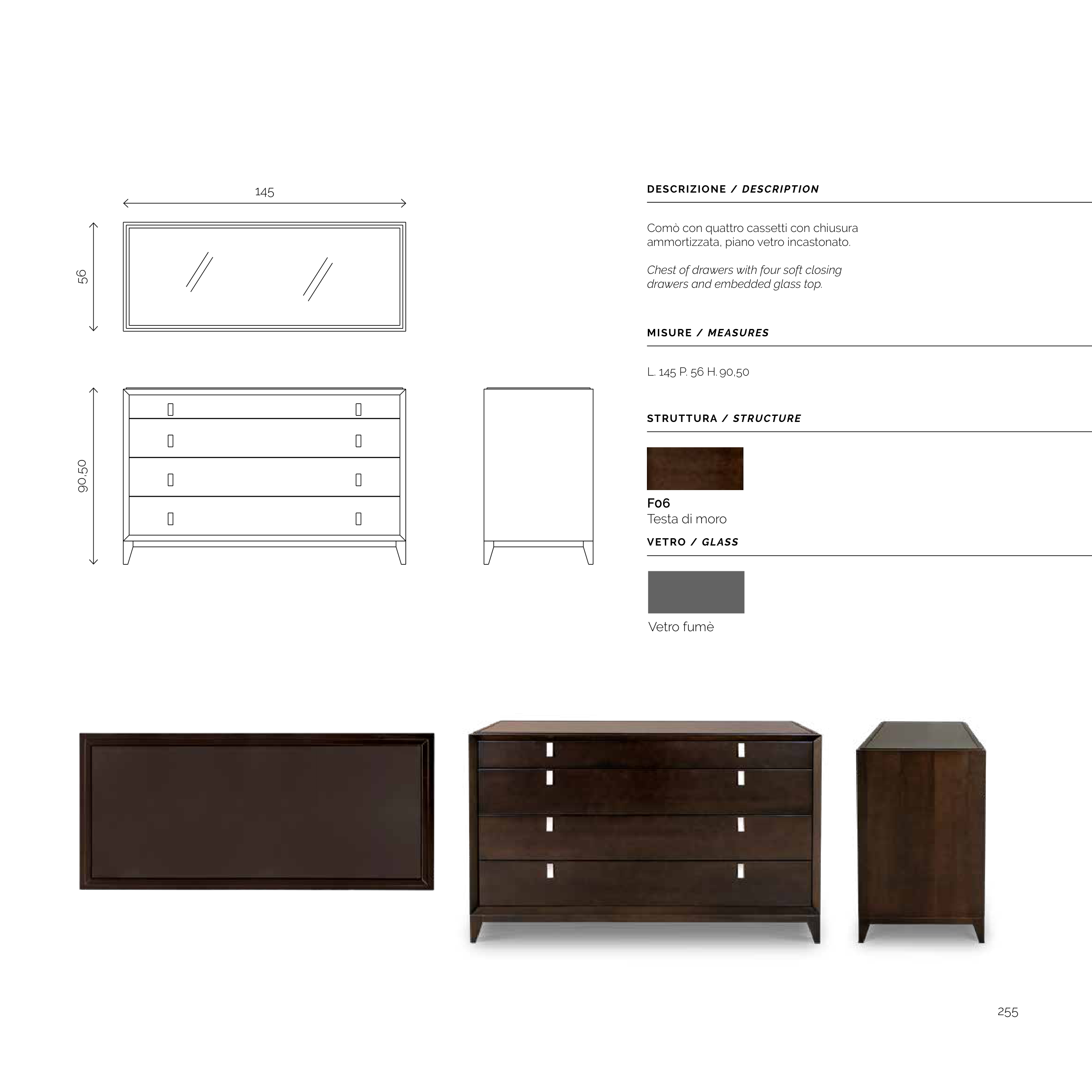 Chest of drawers with four soft closing