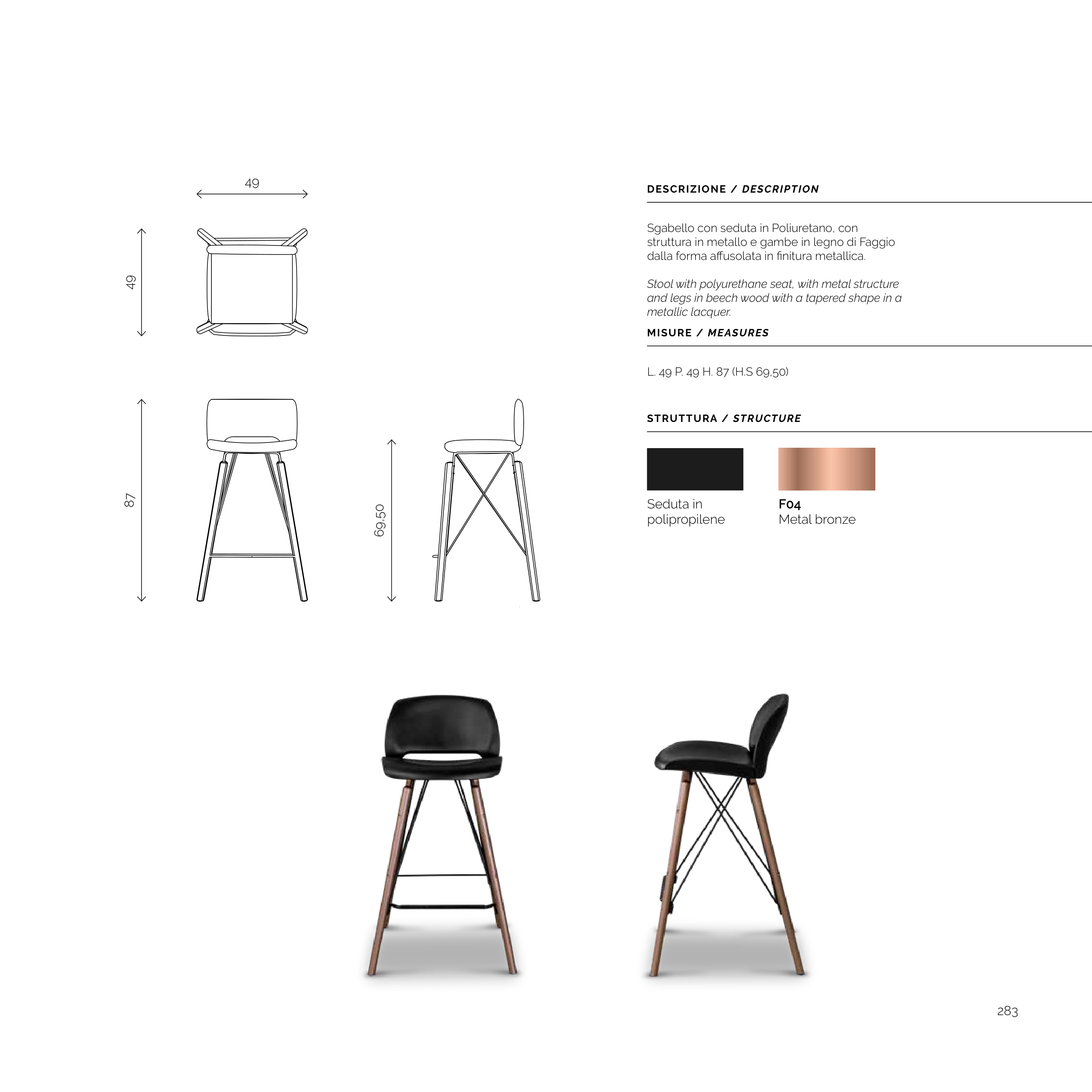 Sgabello con seduta in Poliuretano, con