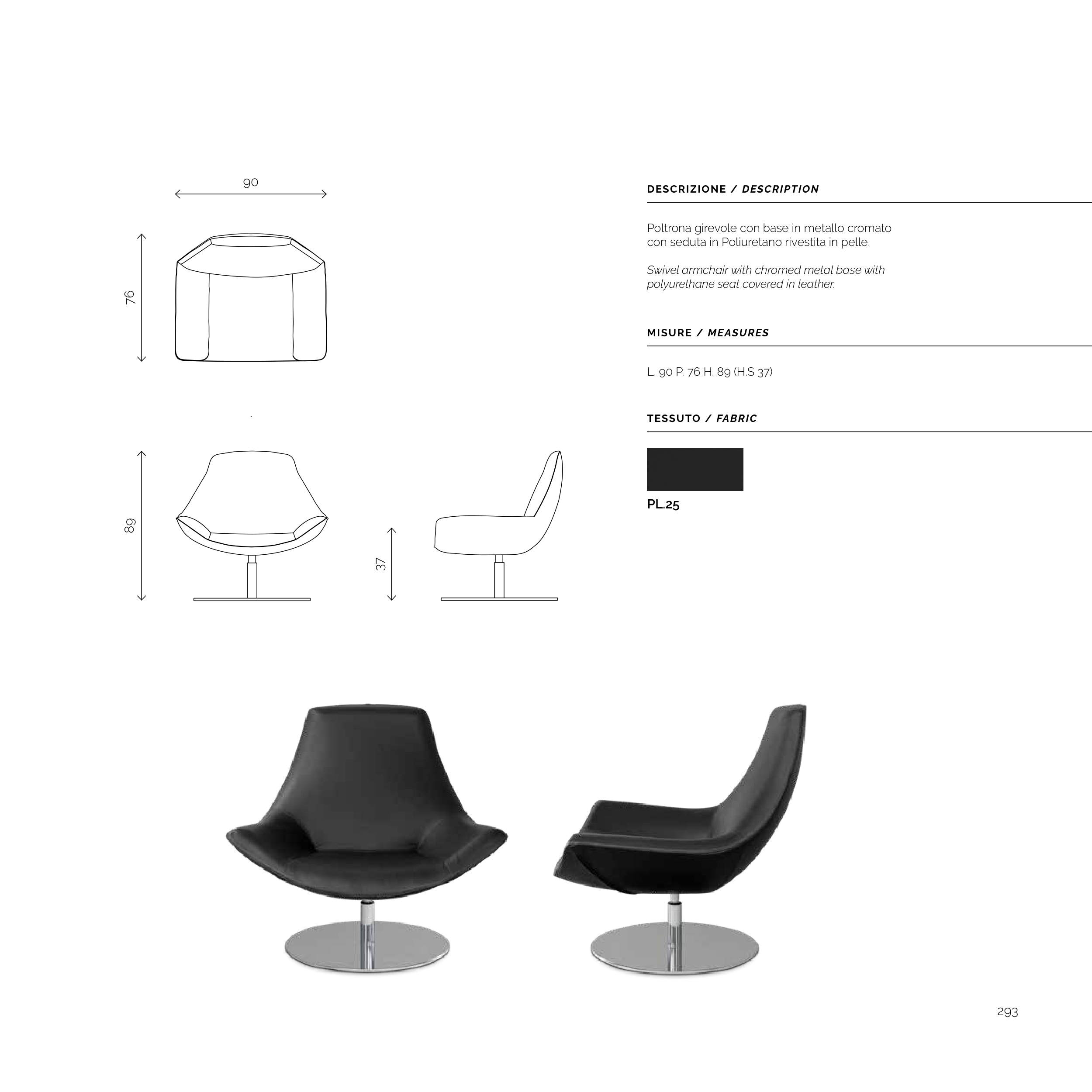 con seduta in Poliuretano rivestita in pelle.