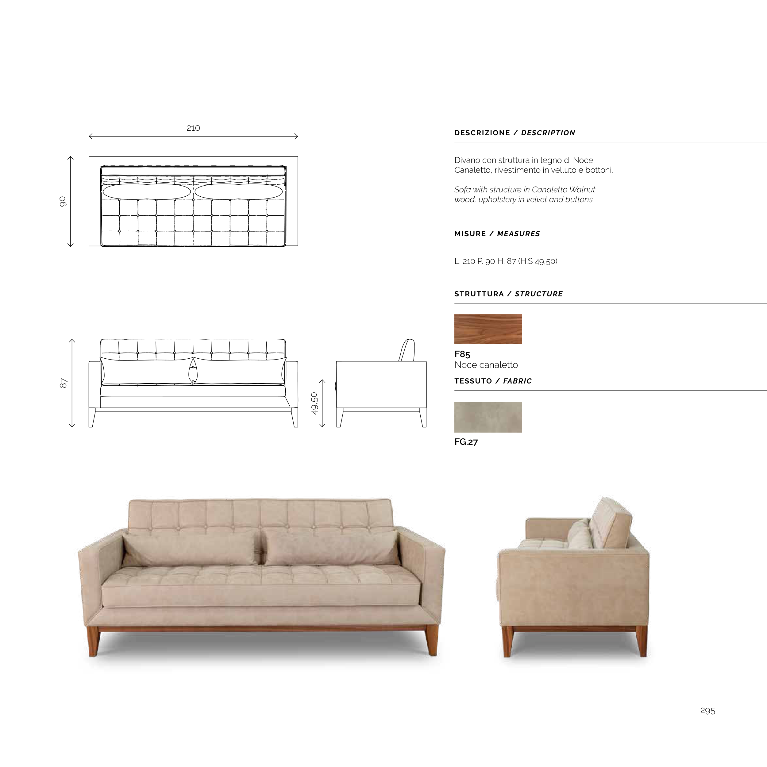 Canaletto, rivestimento in velluto e bottoni.