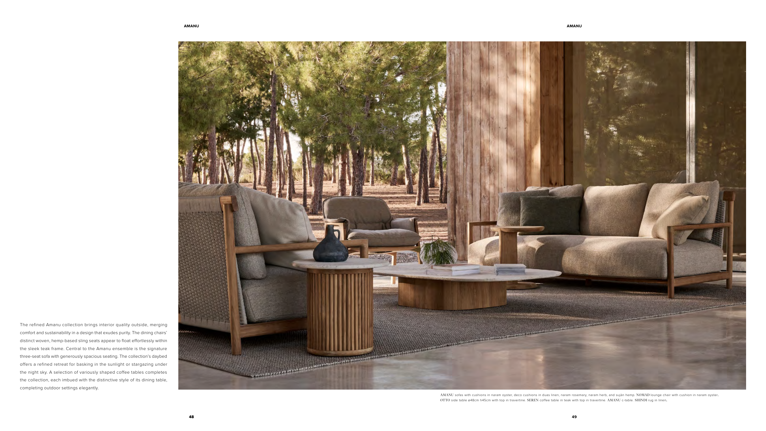 the sleek teak frame. Central to the Amanu ensemble is the signature
