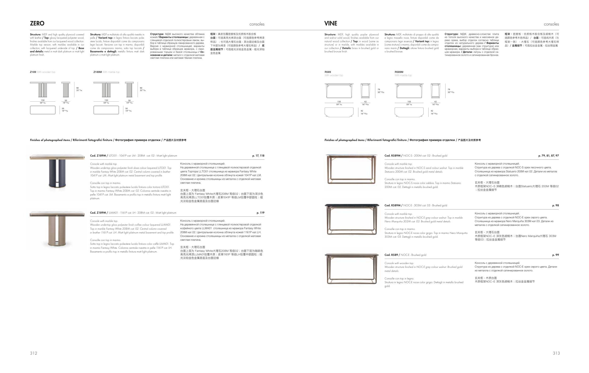 Finishes of photographed items / Riferimenti fotografici finiture / Фотография примера отделки / 产品图片及材质参考