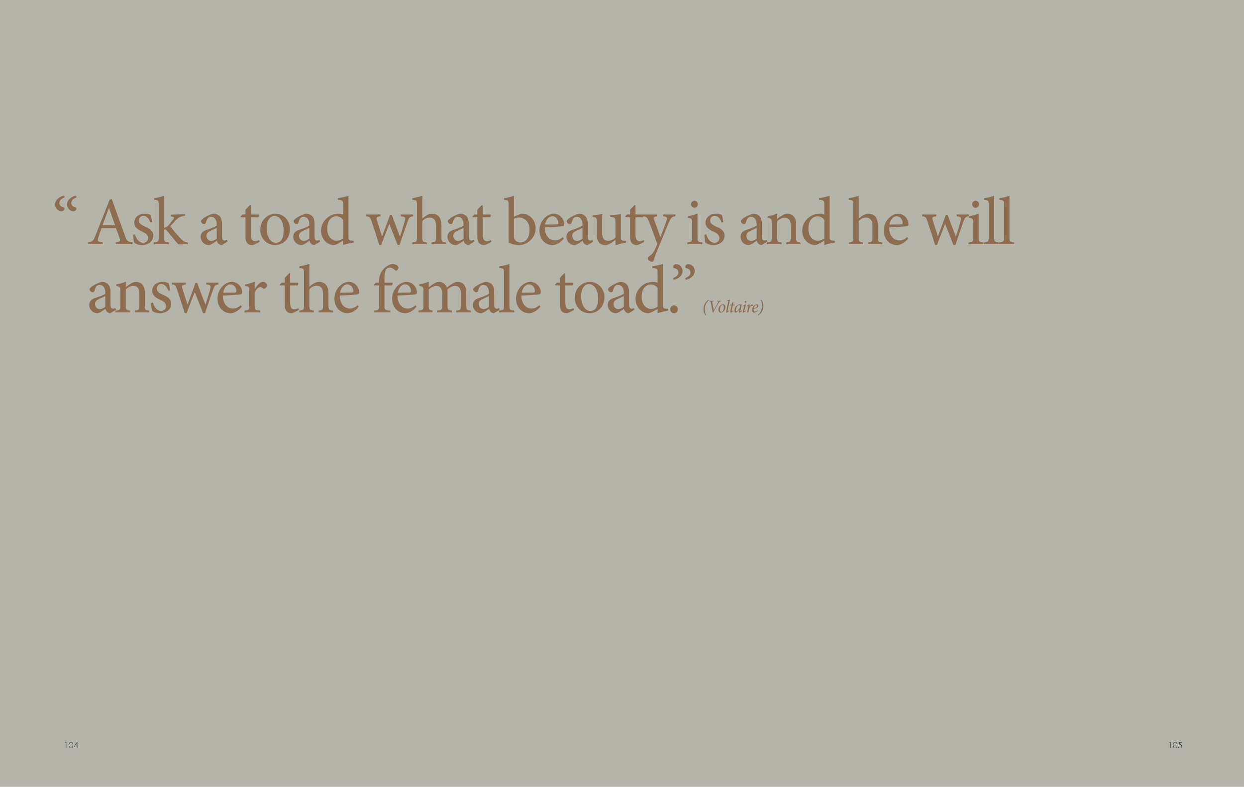 “Ask a toad what beauty is and he will
