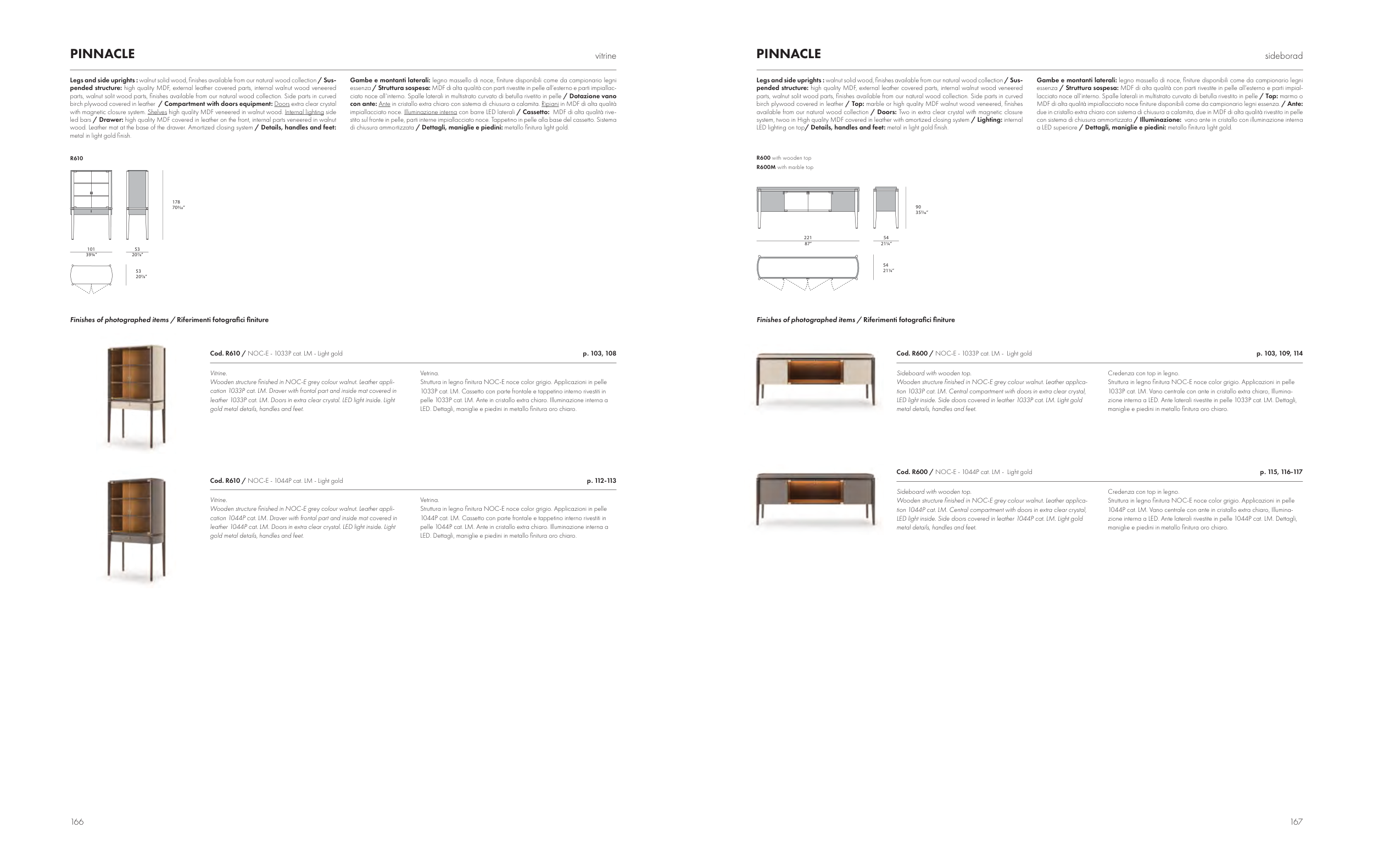 pelle 1044P cat. LM. Ante in cristallo extra chiaro. Illuminazione interna a