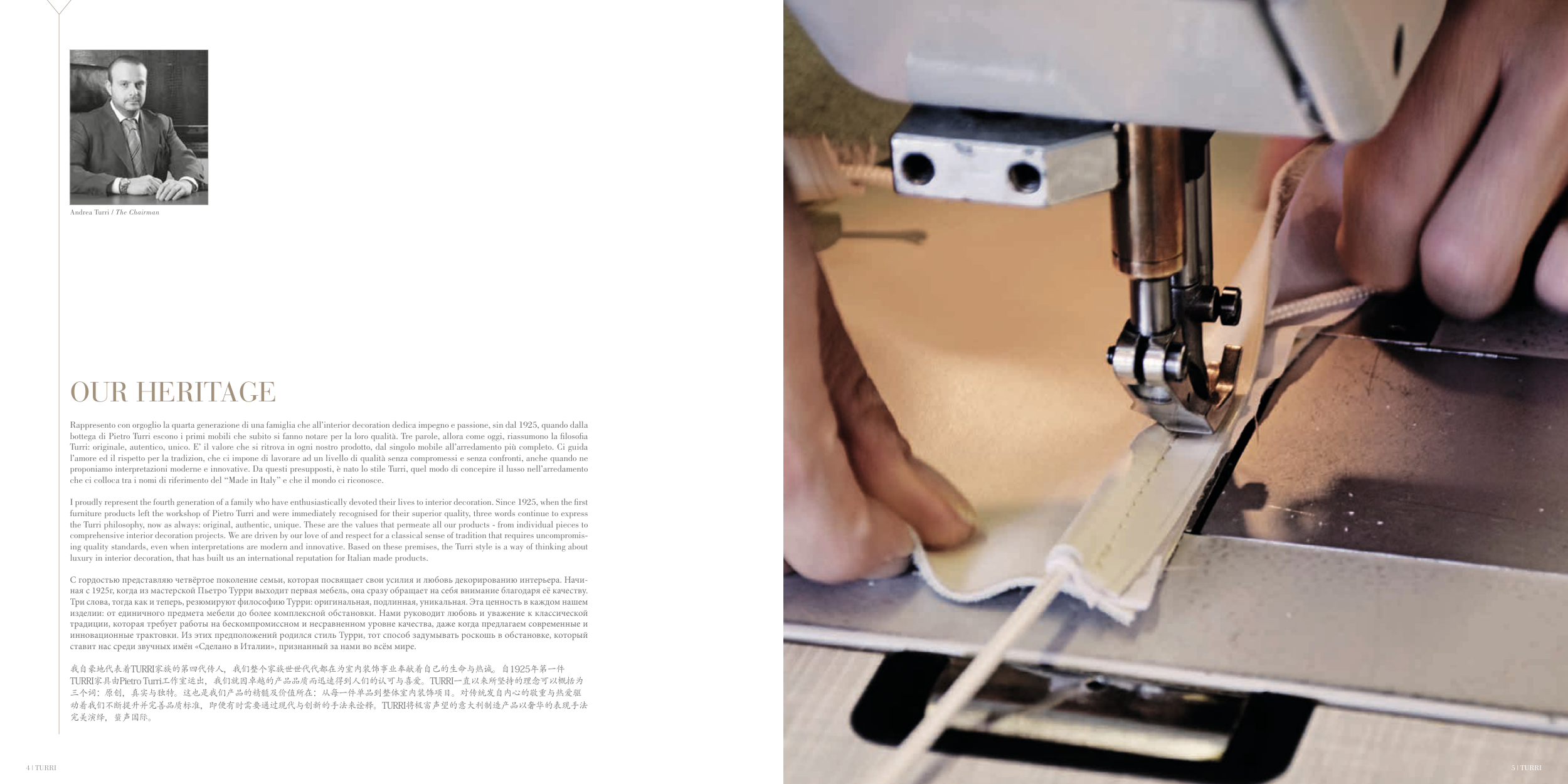 我自豪地代表着TURRI家族的第四代传人,我们整个家族世世代代都在为室内装饰事业奉献着自己的生命与热诚。自1925年第一件