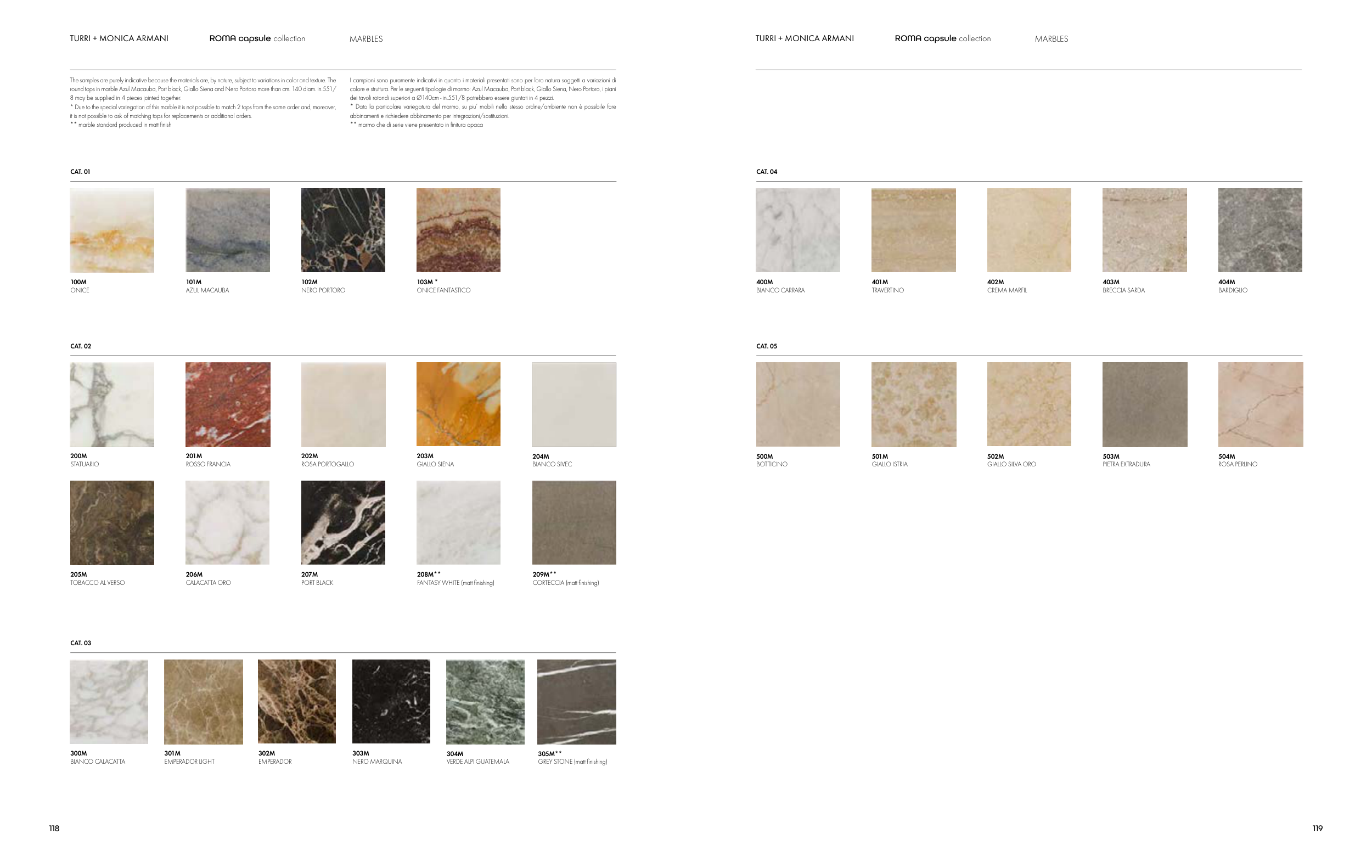 I campioni sono puramente indicativi in quanto i materiali presentati sono per loro natura soggetti a variazioni di