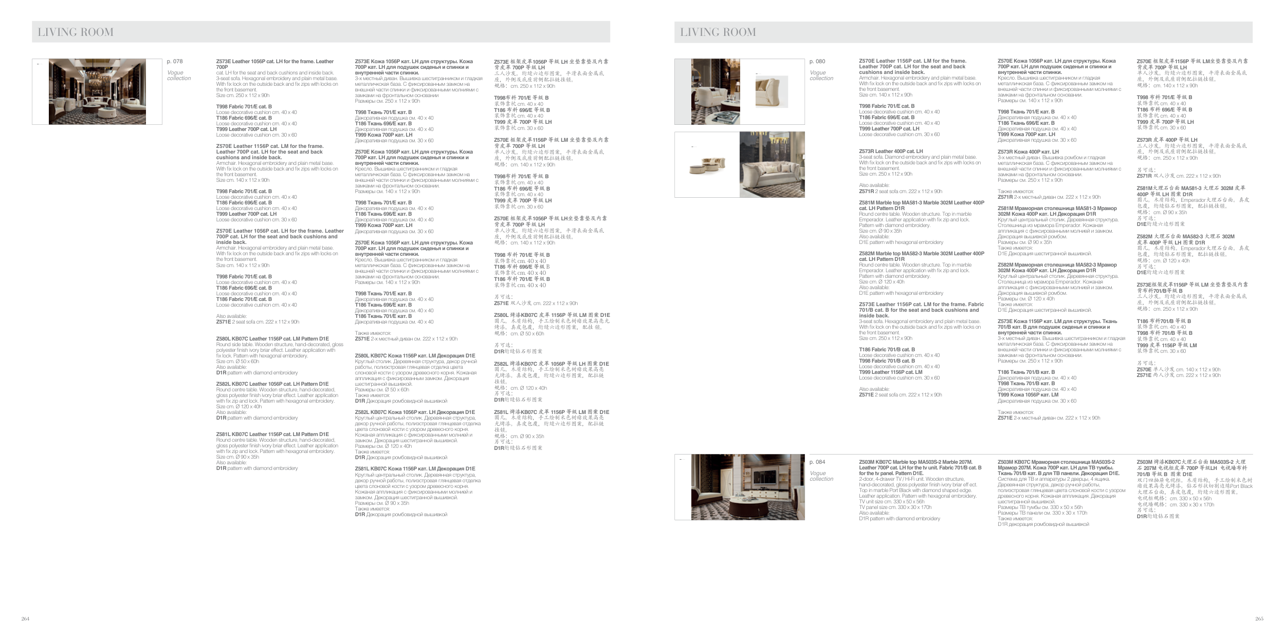 Leather 700P cat. LH for the tv unit. Fabric 701/B cat. B