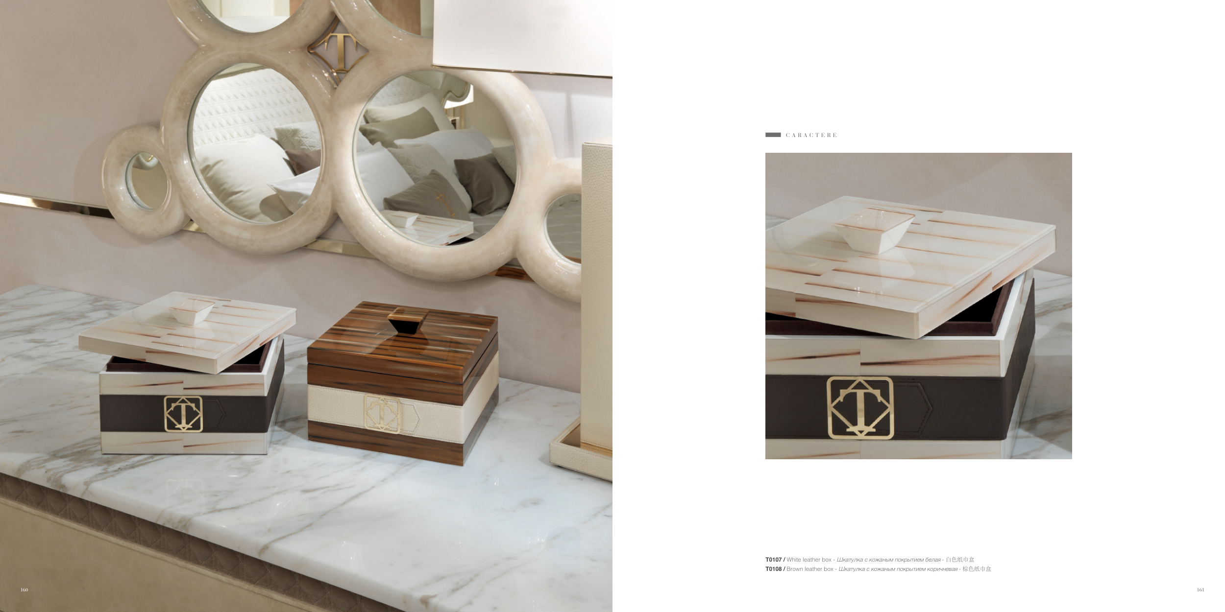 T0107 / White leather box - Шкатулка с кожаным покрытием белая - 白色纸巾盒 T0108 / Brown leather box - Шкатулка с кожаным покрытием коричневая - 棕色纸巾盒 C A R A C T E R E 160 161