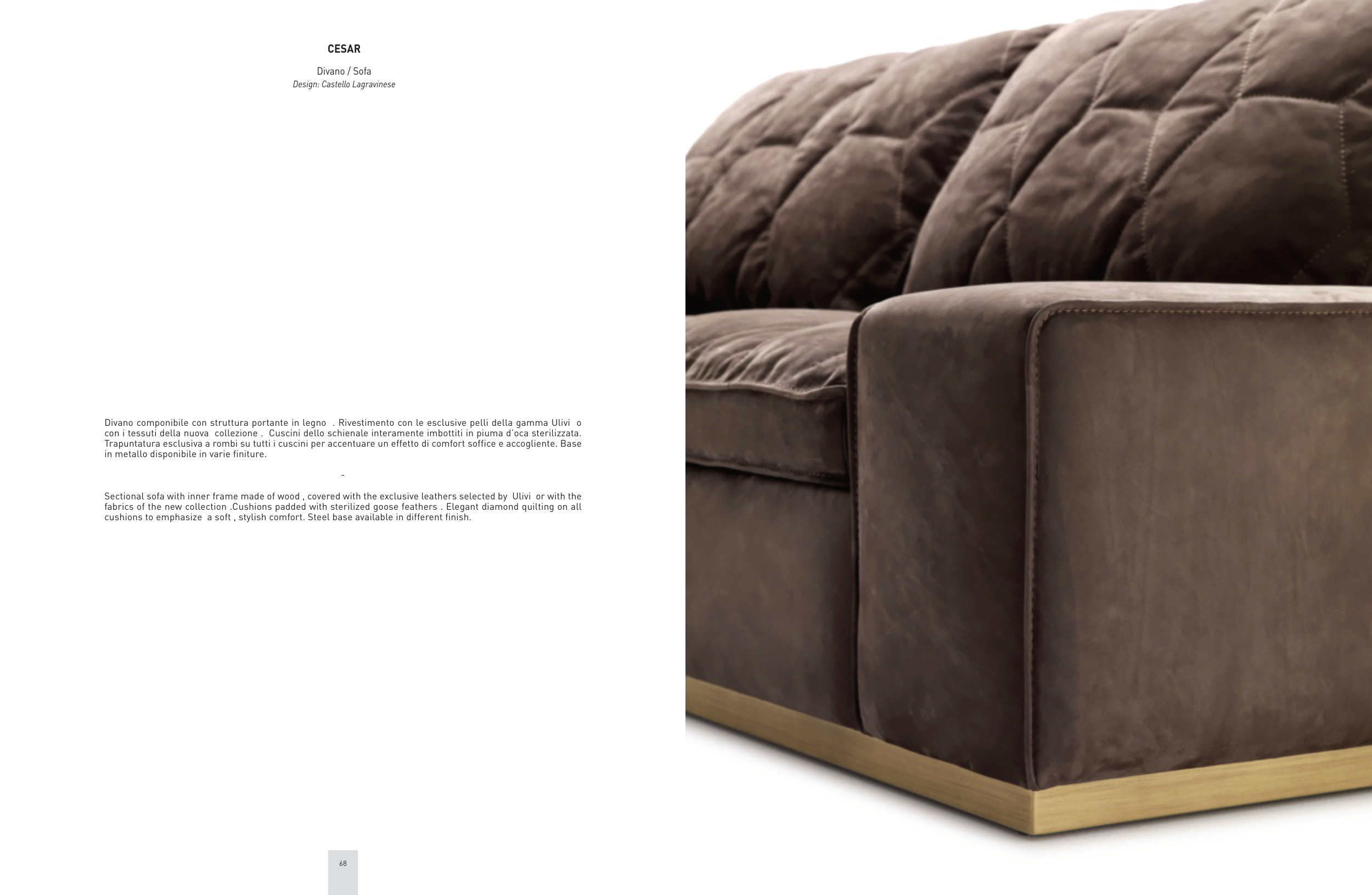 Divano componibile con struttura portante in legno . Rivestimento con le esclusive pelli della gamma Ulivi o