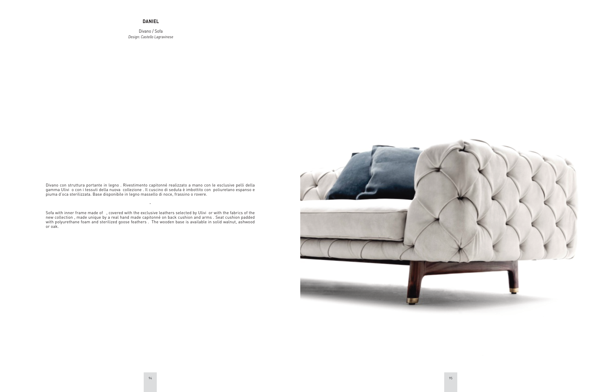 piuma d’oca sterilizzata. Base disponibile in legno massello di noce, frassino o rovere.
