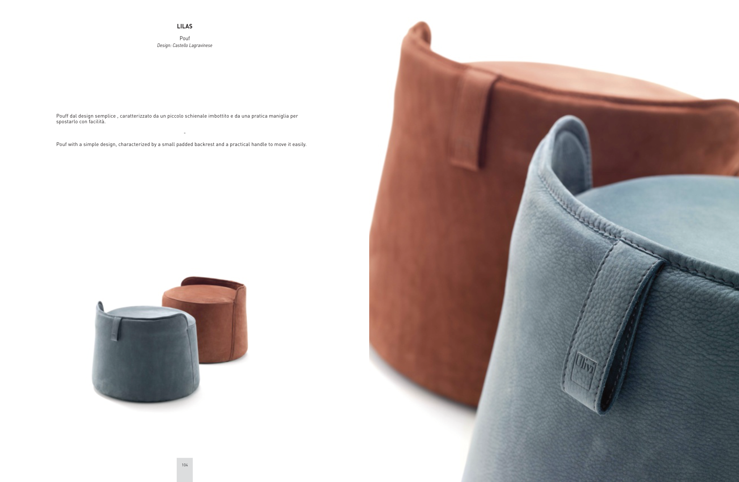 Pouff dal design semplice , caratterizzato da un piccolo schienale imbottito e da una pratica maniglia per