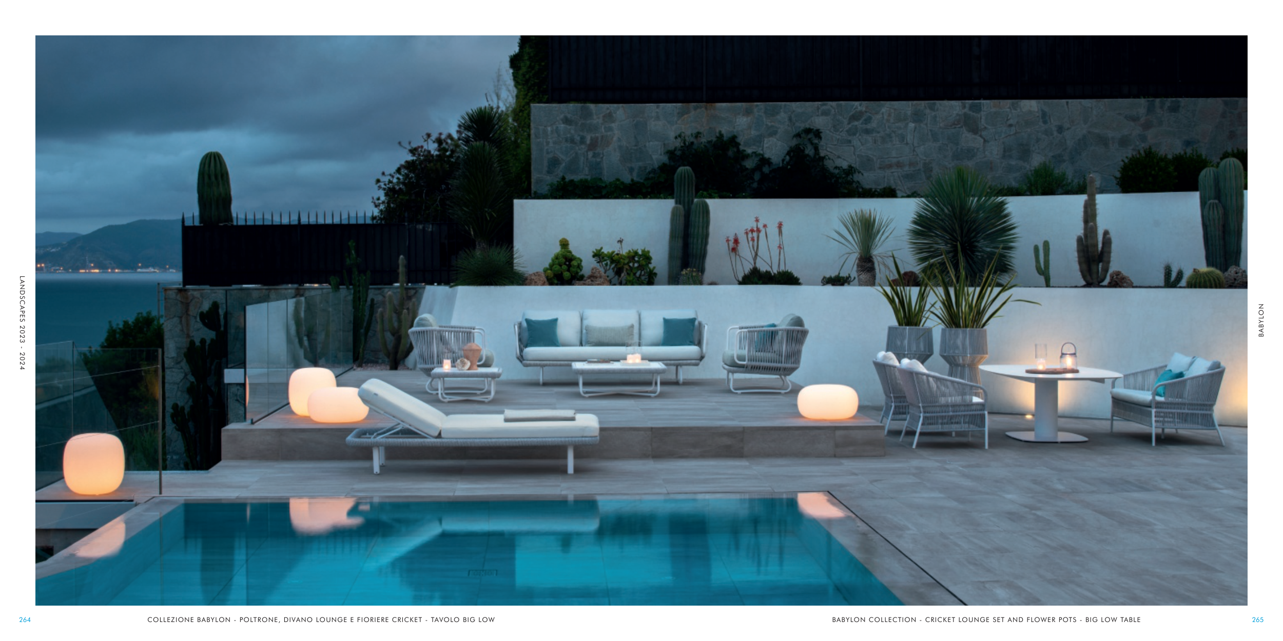COLLEZIONE BABYLON - POLTRONE, DIVANO LOUNGE E FIORIERE CRICKET - TAVOLO BIG LOW